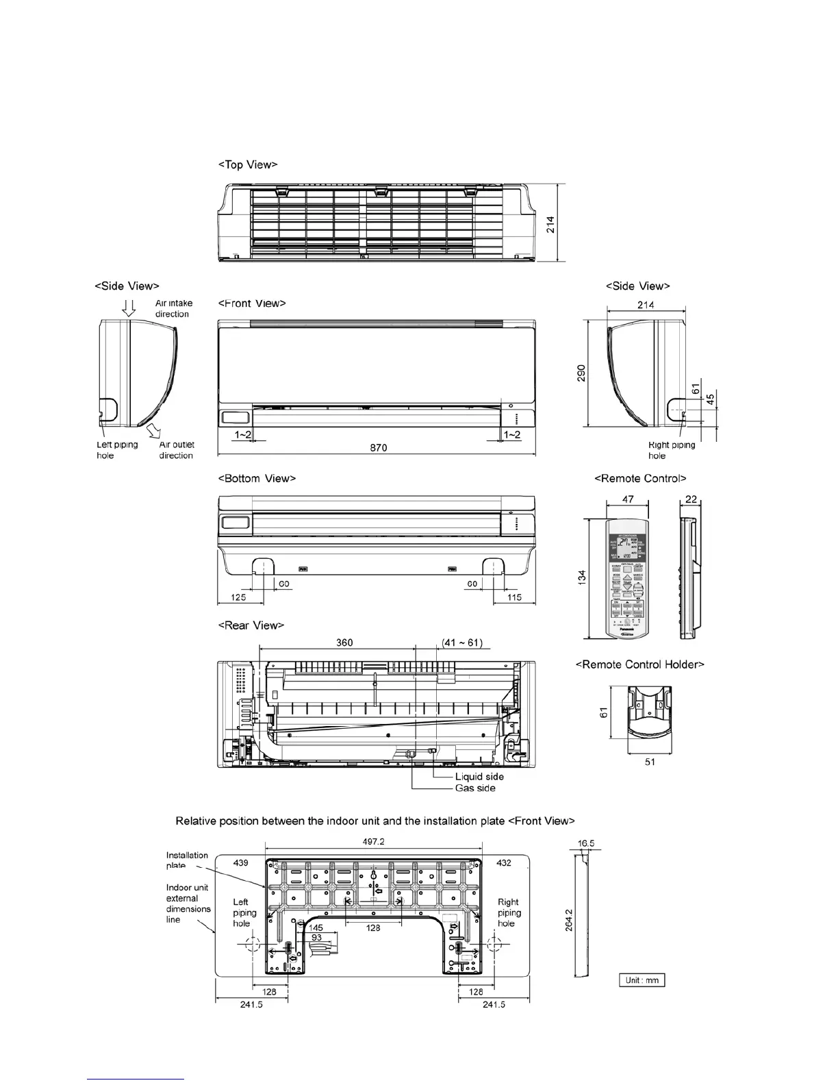 Panasonic CS-S24PKH - 4 Dimensions; Indoor Unit
