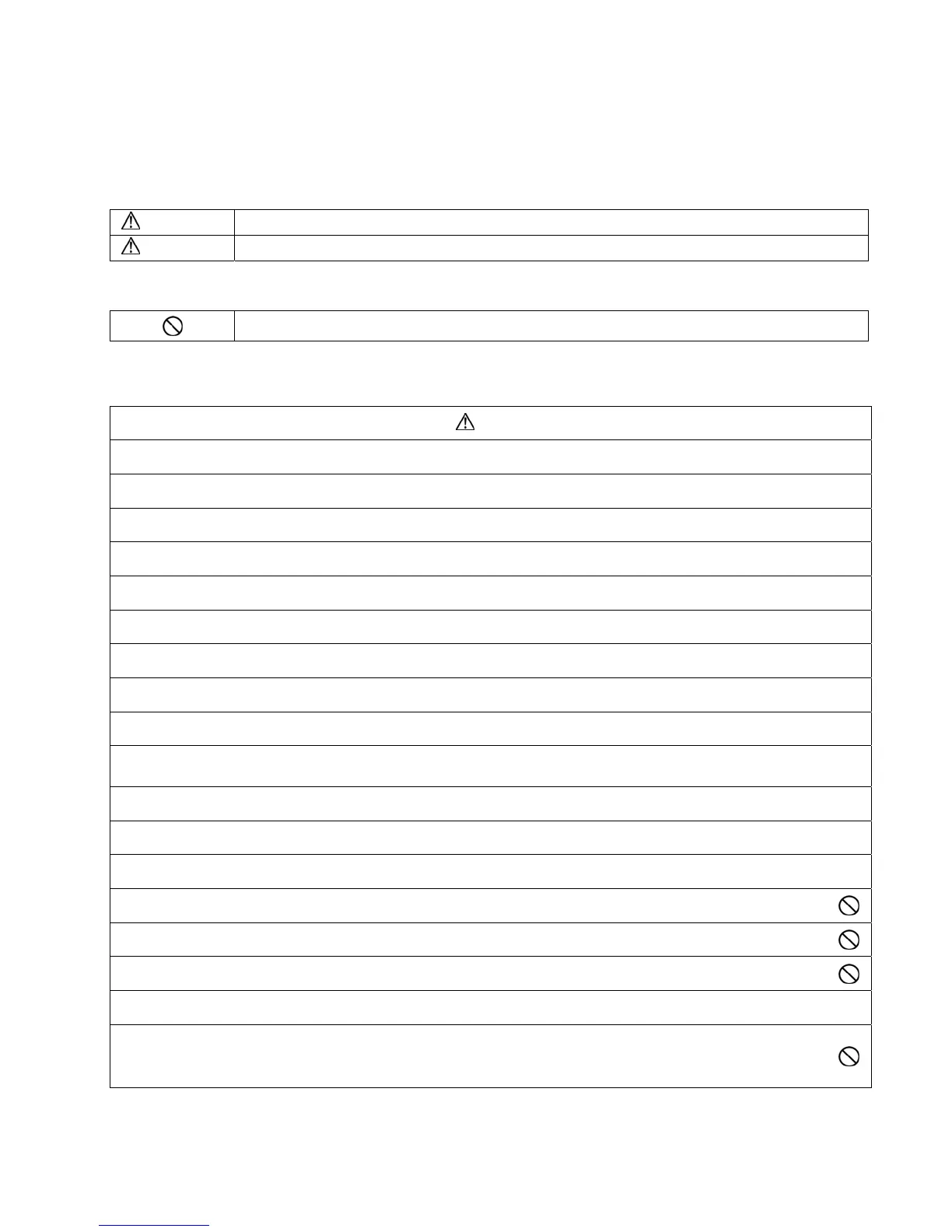• The caution items stated here must be followed because these important contents are related to safety. The meaning of each