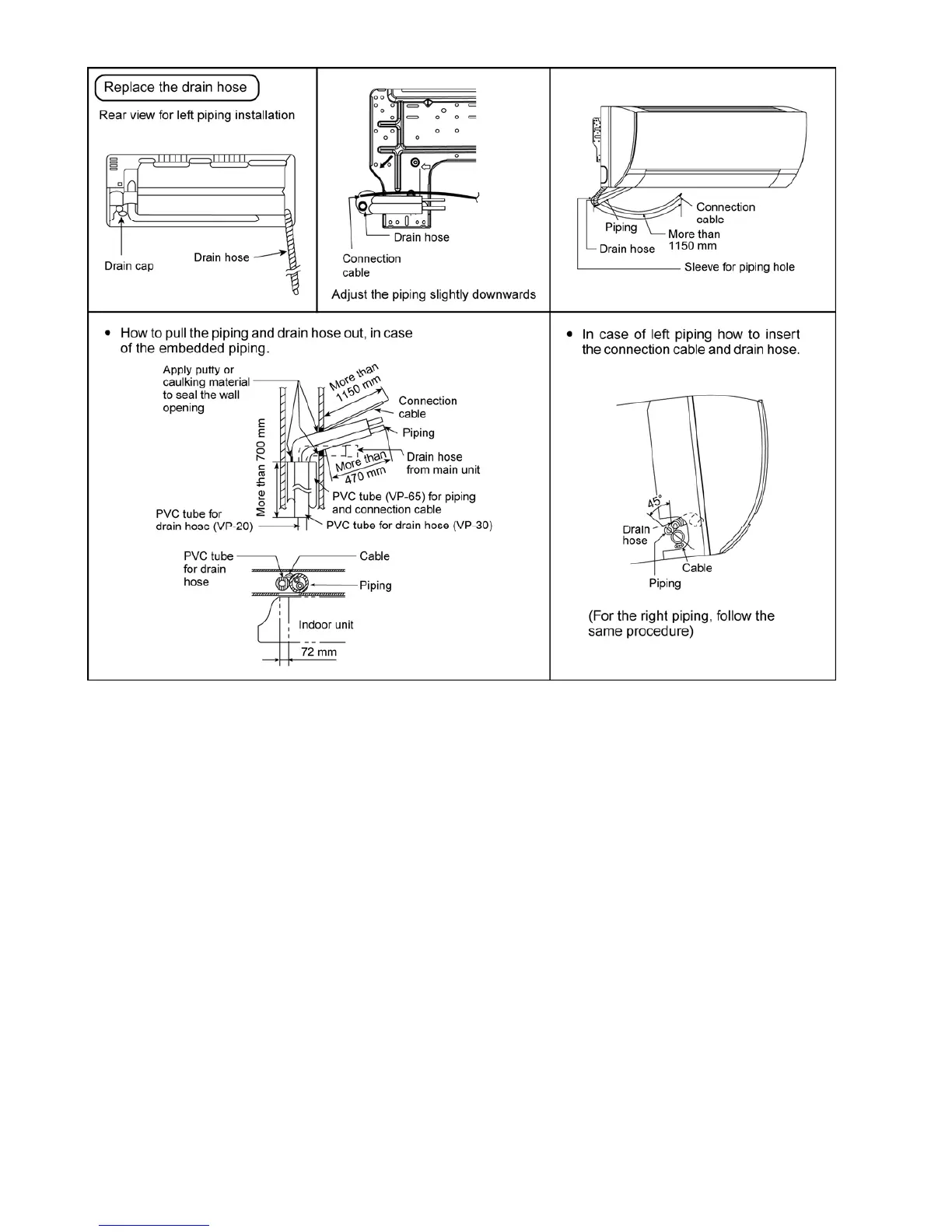 6 Bind all the indoor and outdoor connection cable with tape and route the connection cable via the right