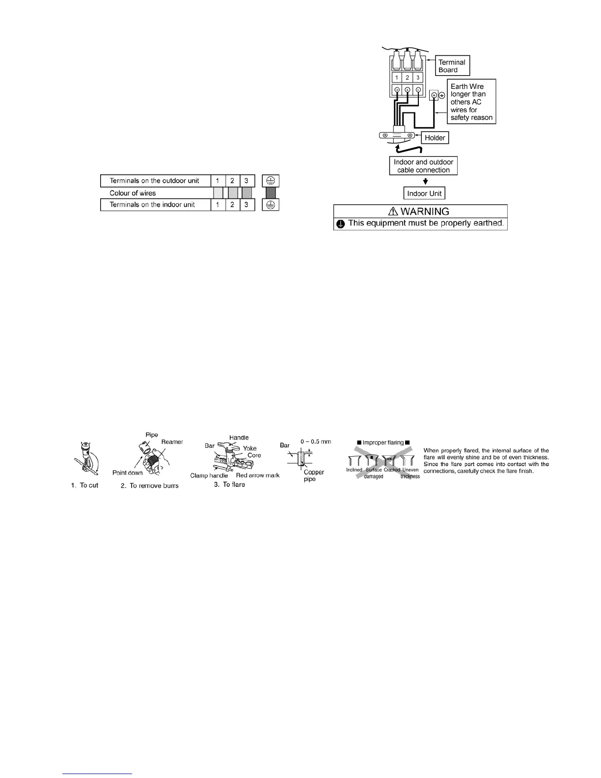 3 Please make flare after inserting the flare nut onto the copper pipes.