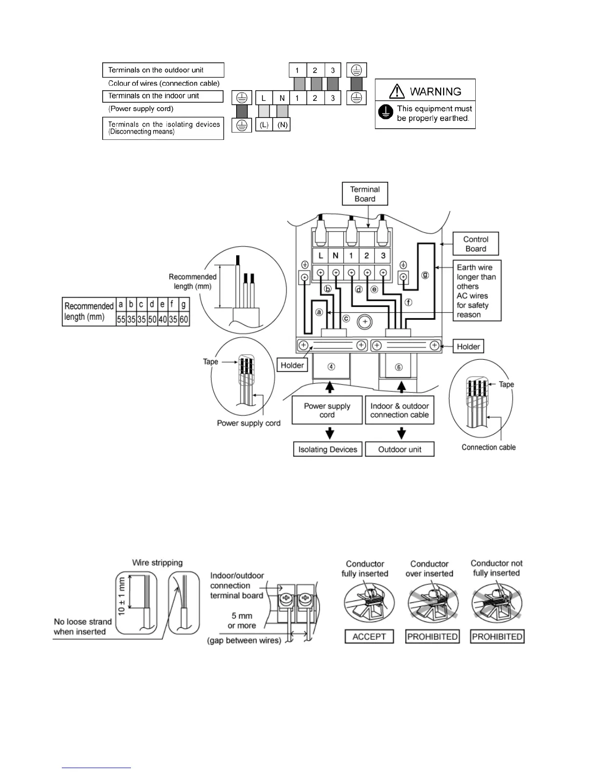 • Earth wire shall be Yellow/Green (Y/G) in colour and longer than other AC wires as shown in the figure for the