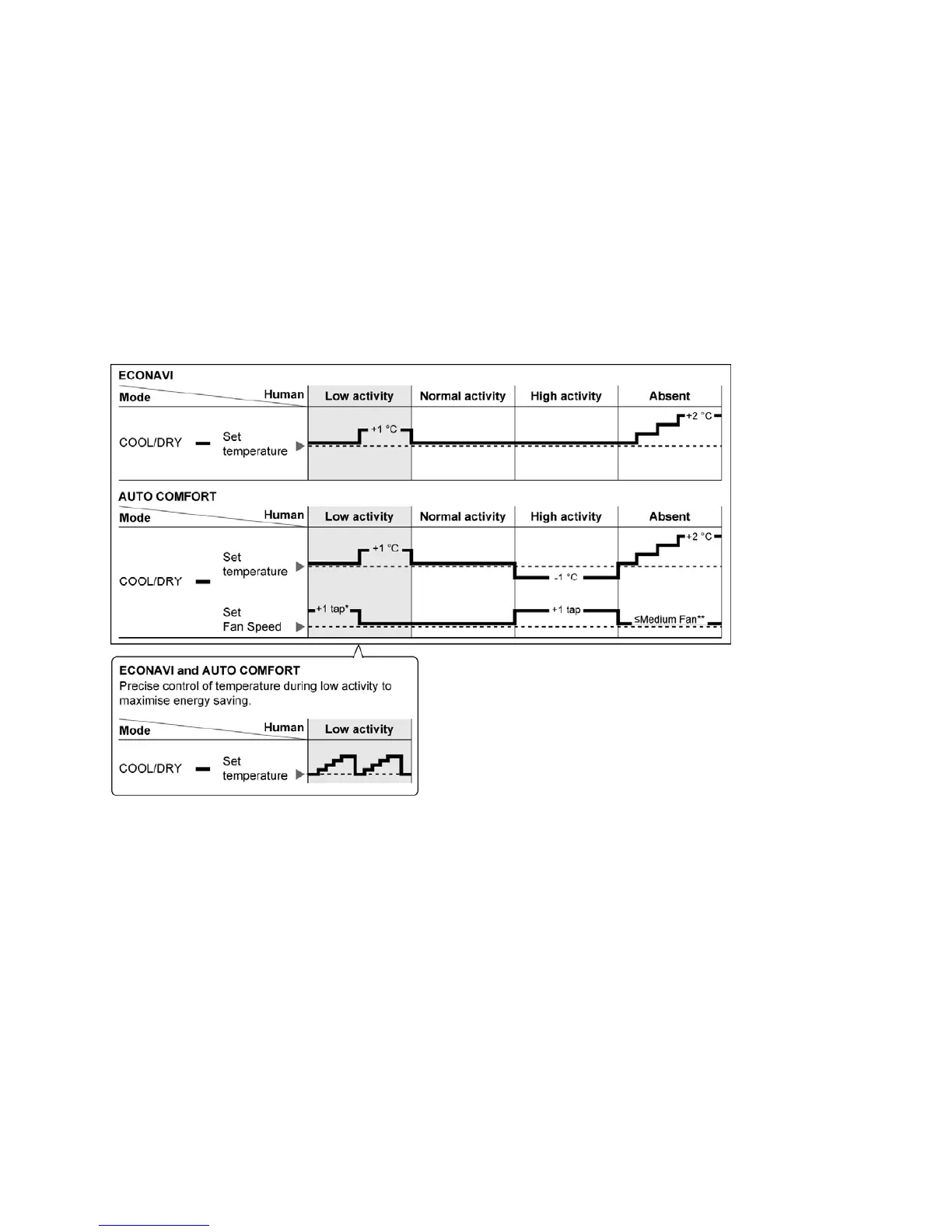 • To further maximize the energy saving during ECONAVI or AUTO COMFORT operates at low activity level.
