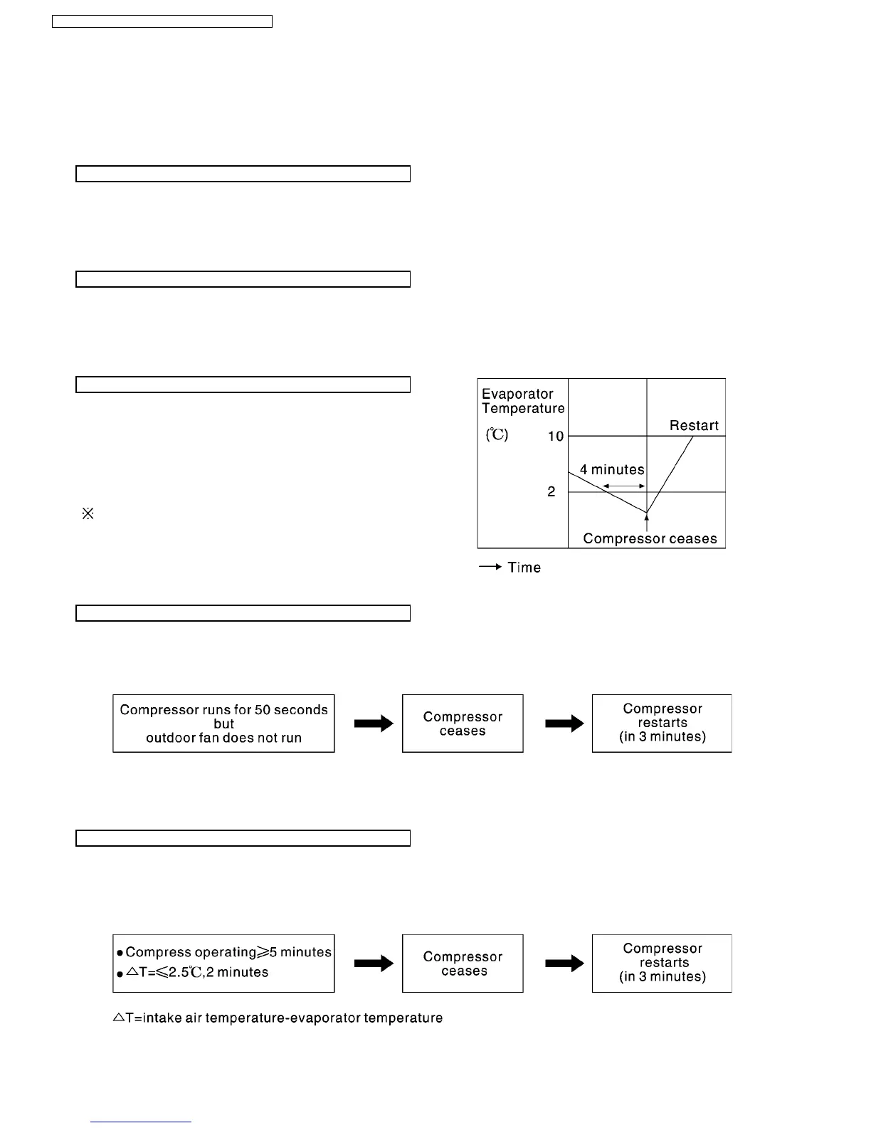evaporator is continuously lower than 2.5°C or below for 2 minutes, the compressor is ceased for 3 minutes then restarts. (Time
