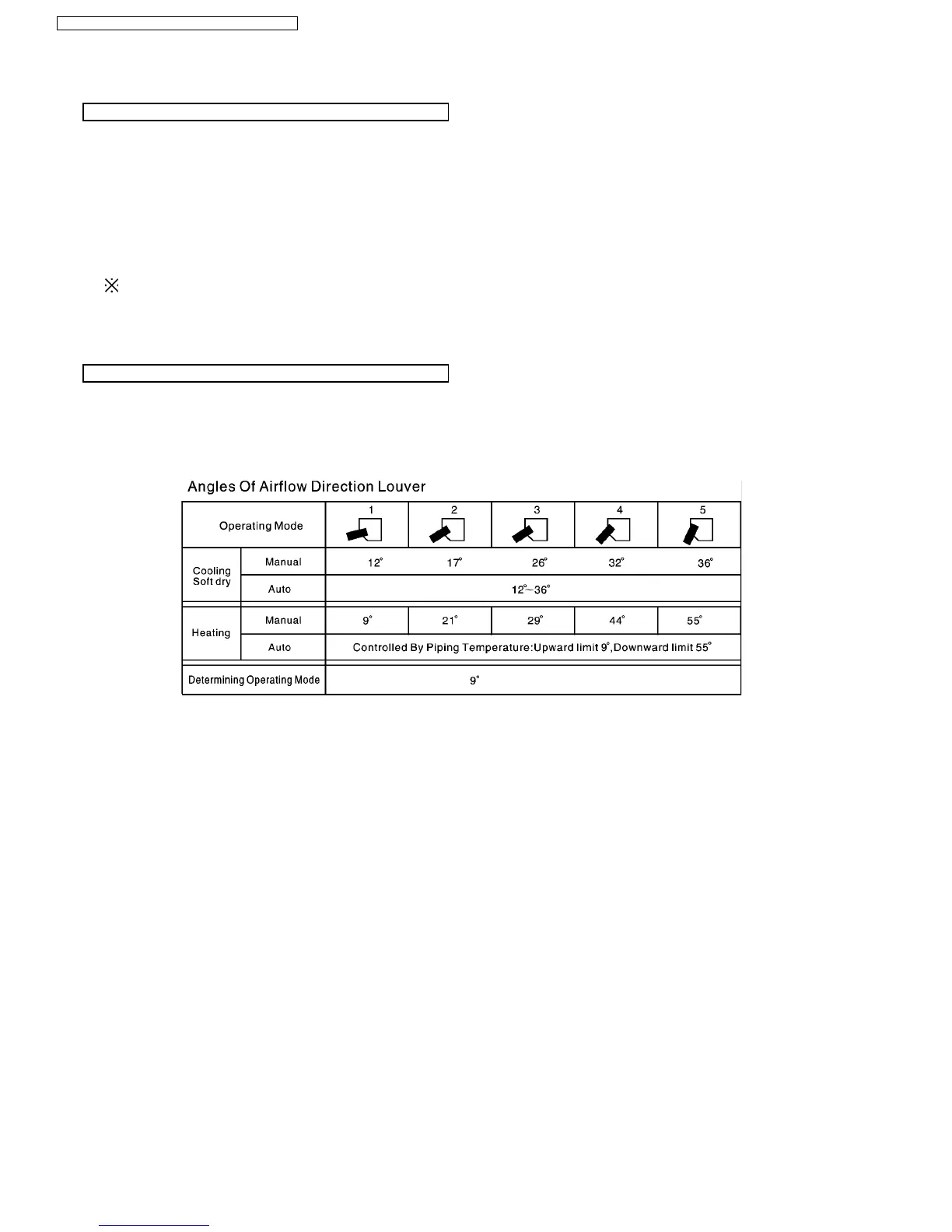 When set at airflow direction auto-control with remote controller, the louver swings up and down as shown in the table below.