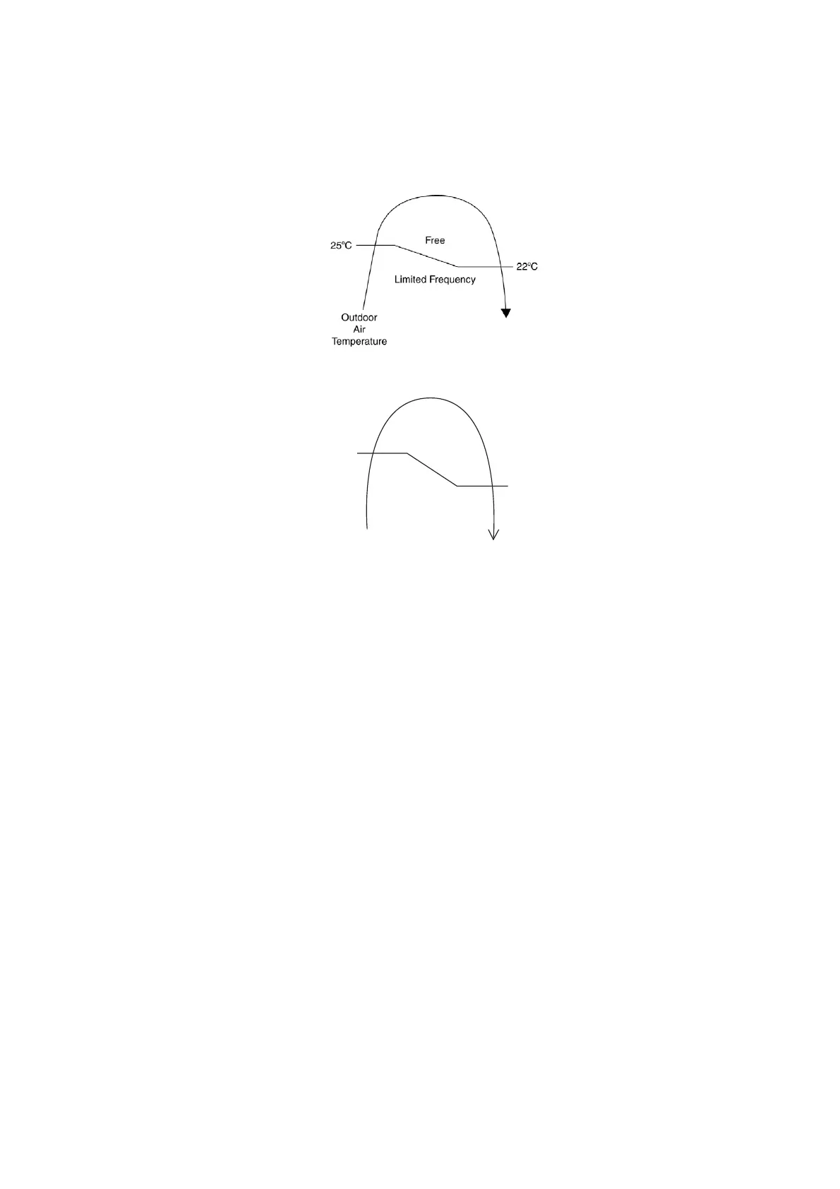 The compressor operating frequency is regulated in accordance to the outdoor air temperature as shown in the