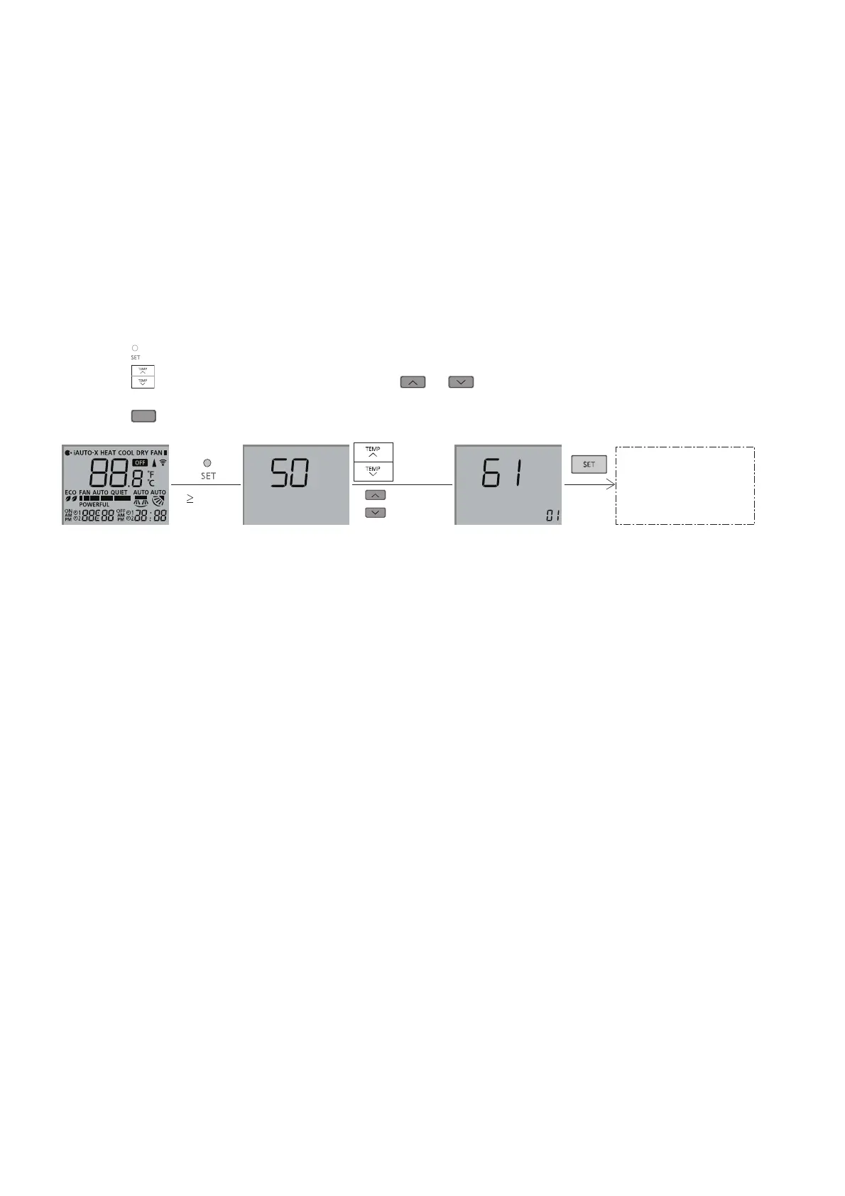 b) Press to choose function 61, and then press or to set “01”. (To enable the “Heat Only” mode)