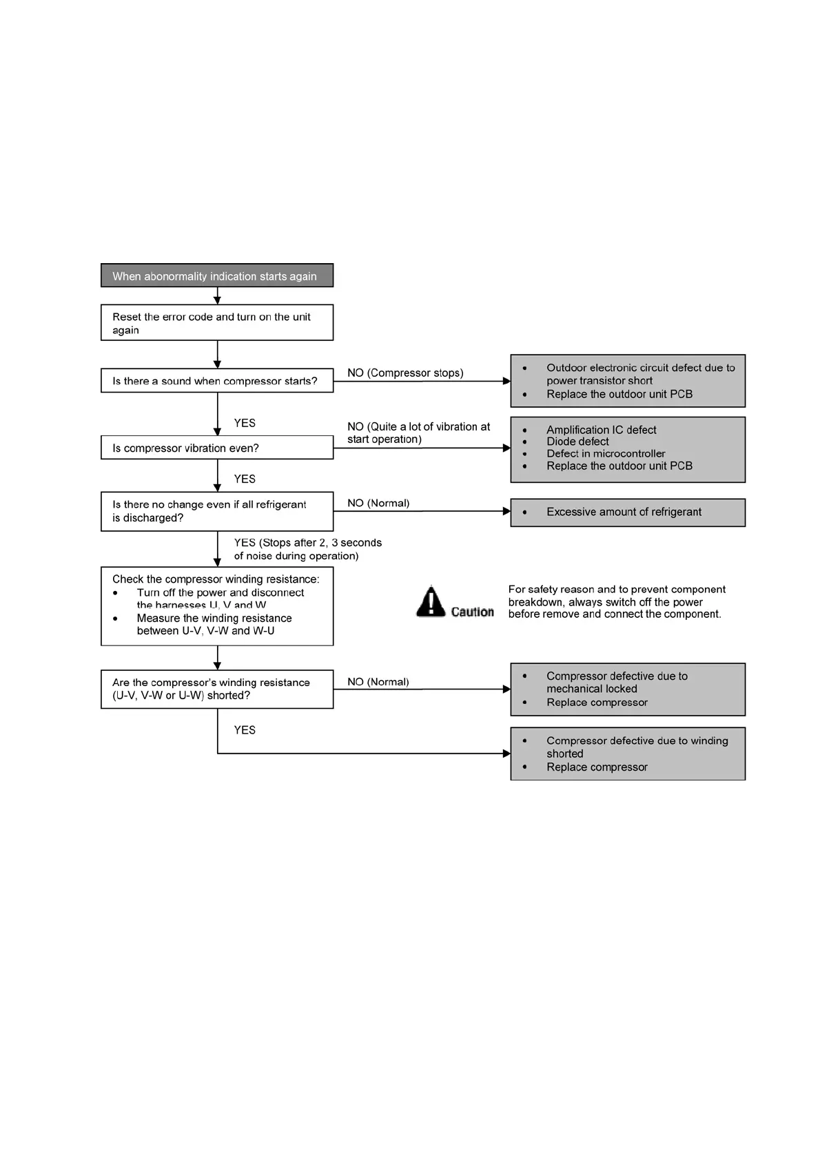 DC current peak due to defective outdoor unit PCB.