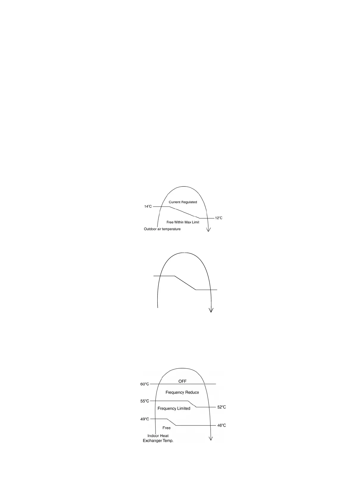 The compressor operating frequency is regulated in accordance to indoor heat exchanger temperature as shown