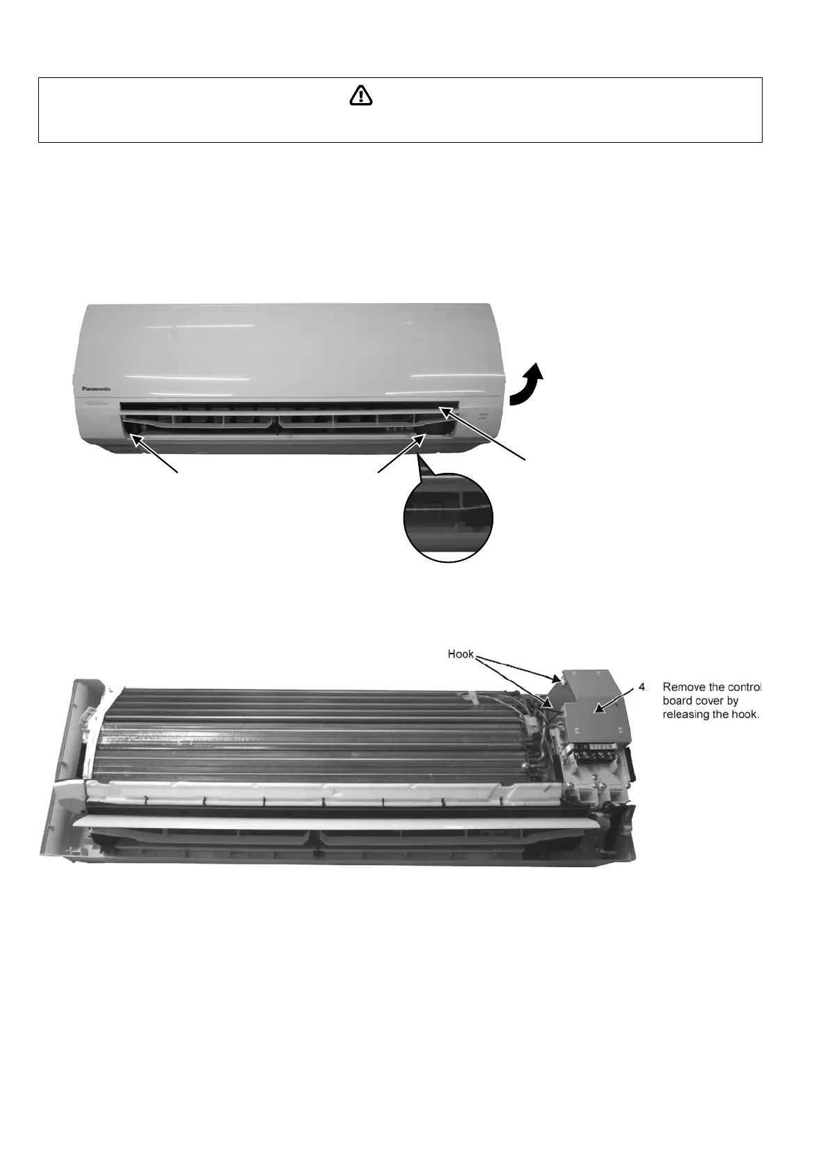 High Voltage are generated in the electrical parts area by the capacitor. Ensure that the capacitor has discharged sufficiently before proceeding