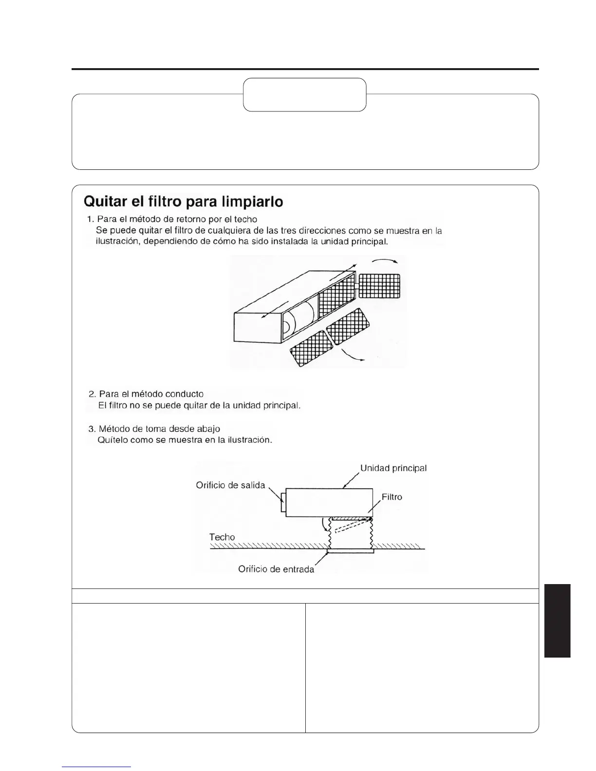 • Cuando limpie el filtro de aire, compruebe que el sitio sobre el que se apoya es seguro.