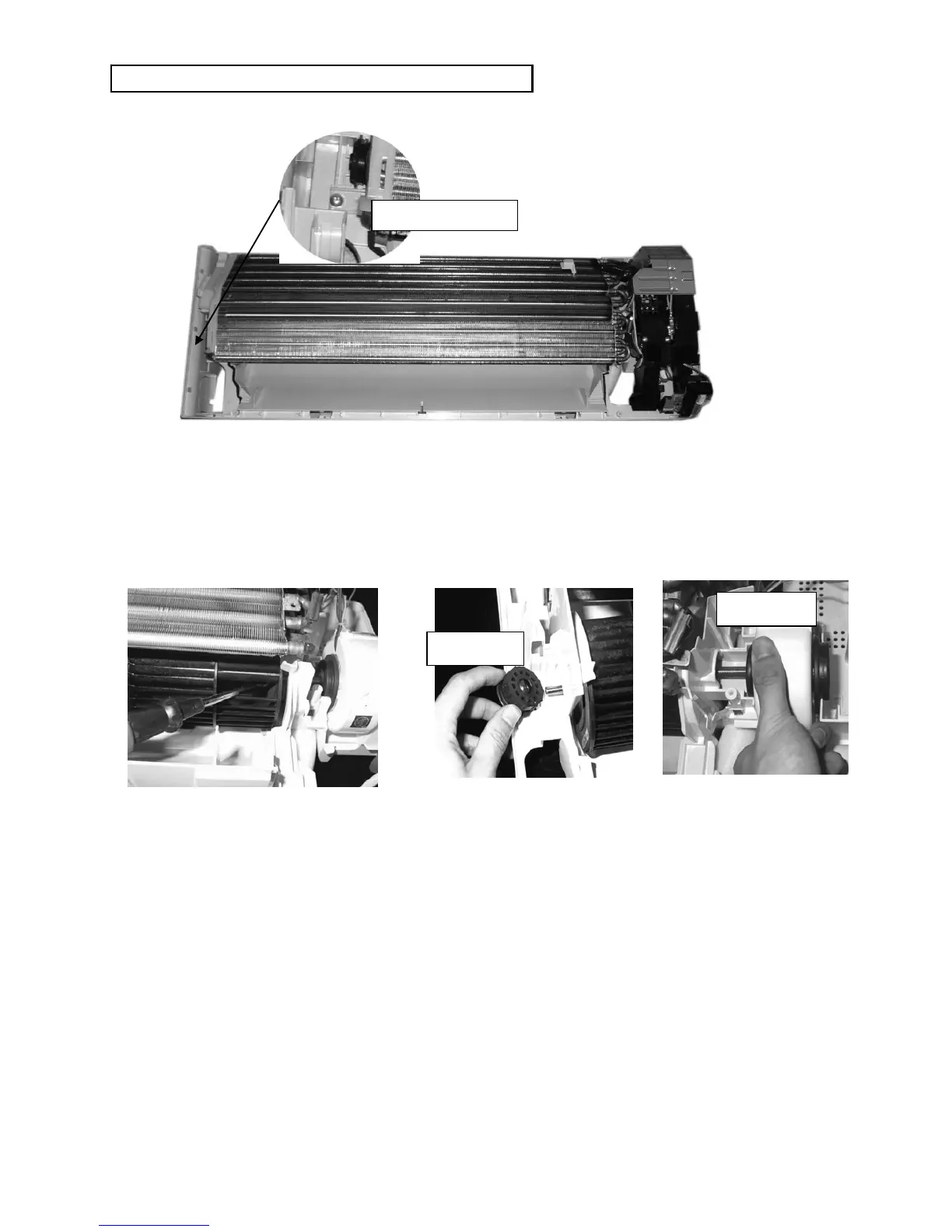3. After removing the bearing, indoor fan can be taken out from the left side