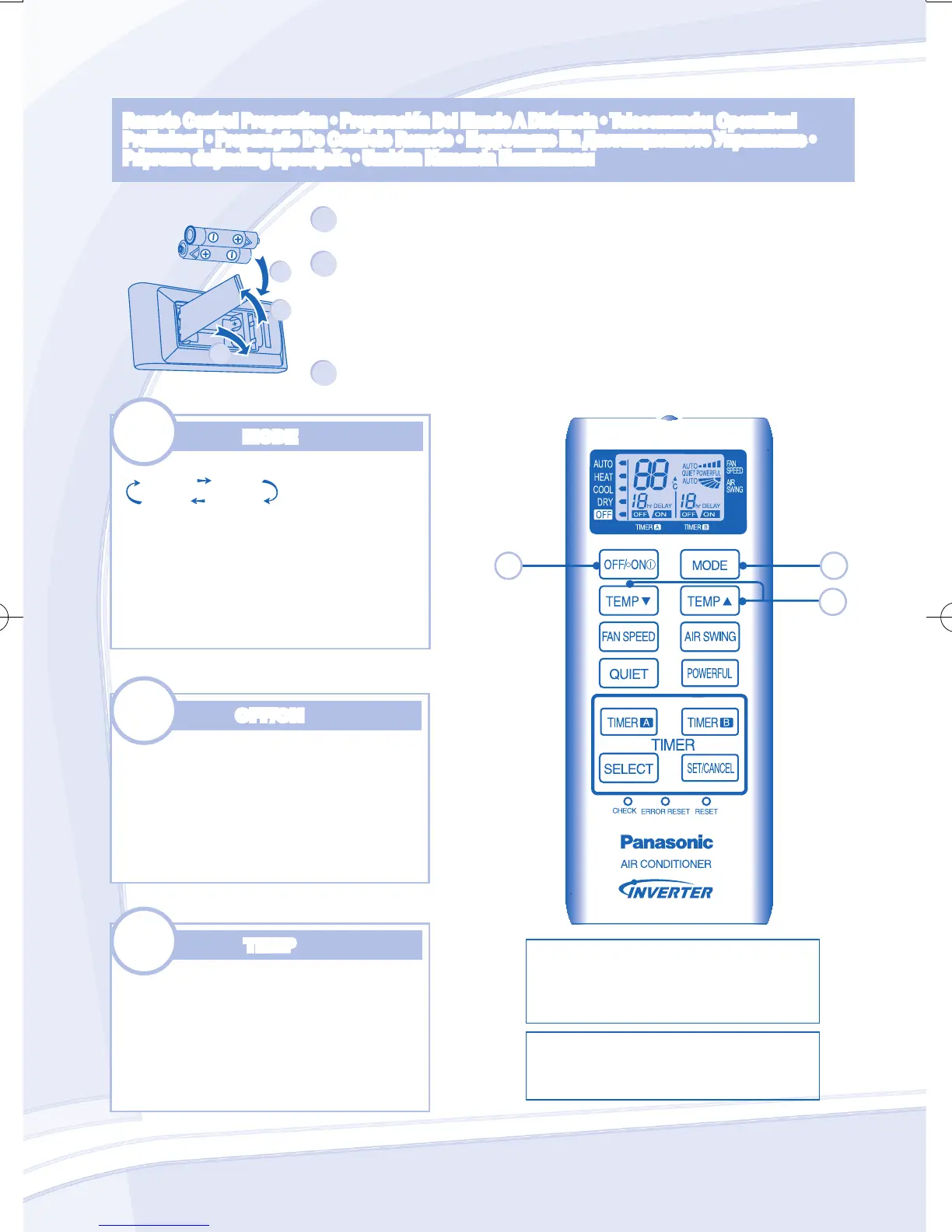 Remote Control Preparation • Preparación Del Mando A Distancia • Telecomando: Operazioni