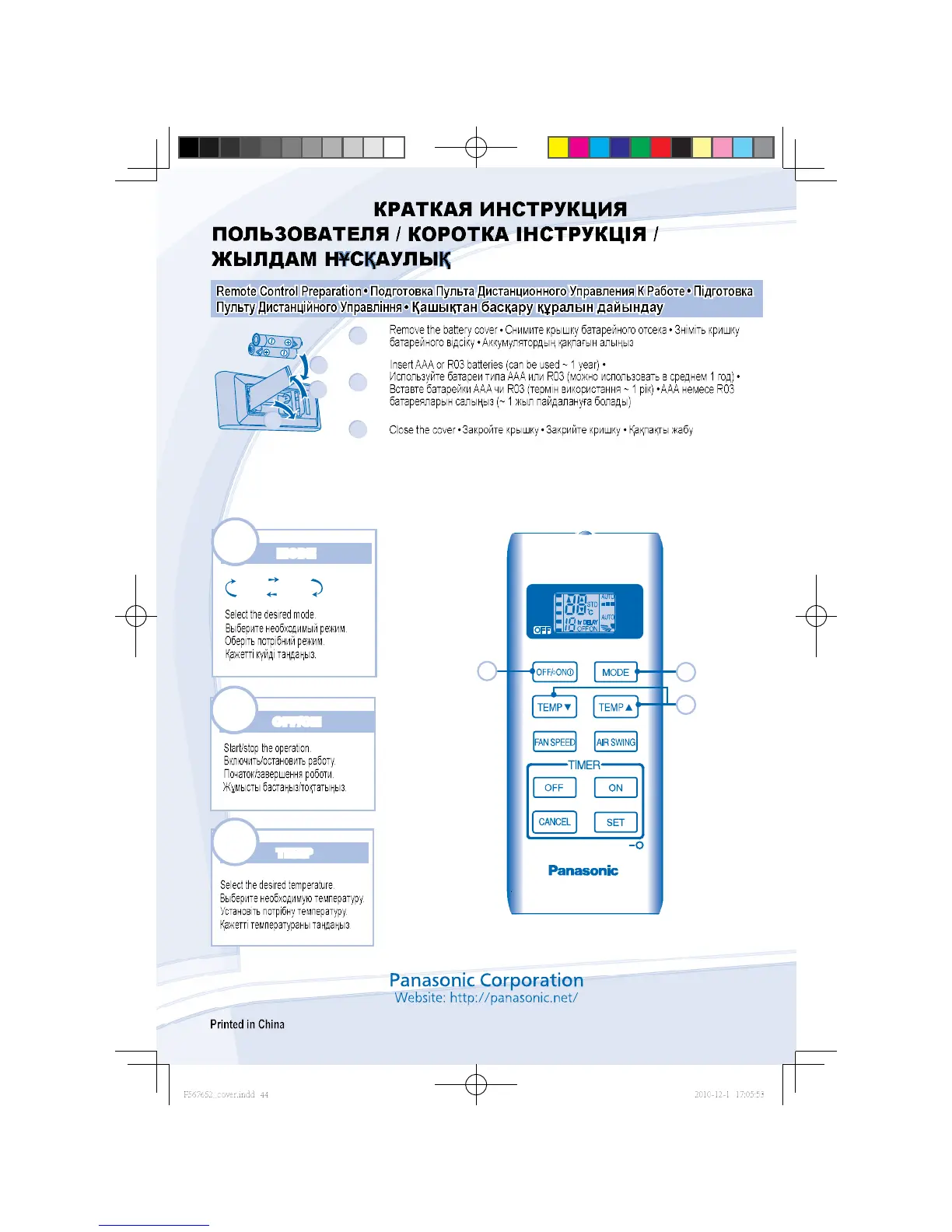 Panasonic CS-YW7MKD - QUICK GUIDE; Remote Control Preparation