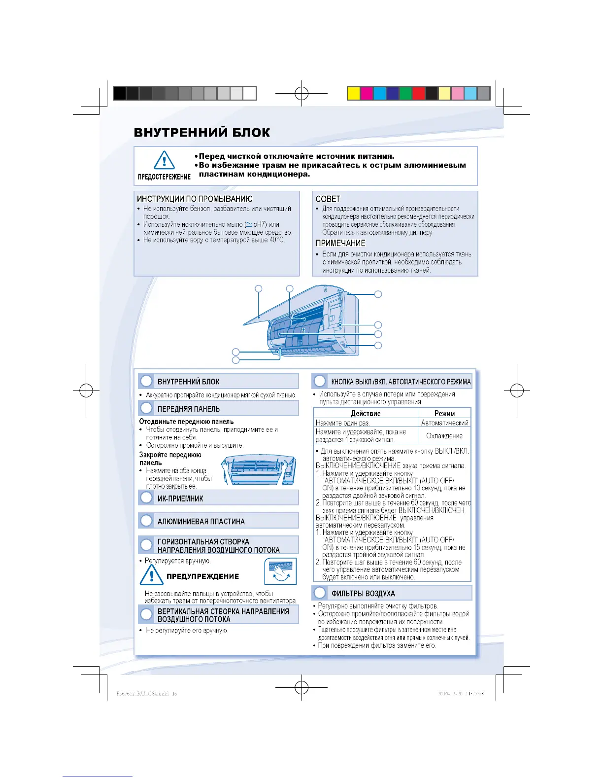 Panasonic CS-YW7MKD - Indoor Unit; Cleaning Instructions; Front Panel; Auto Mode ON;OFF Button