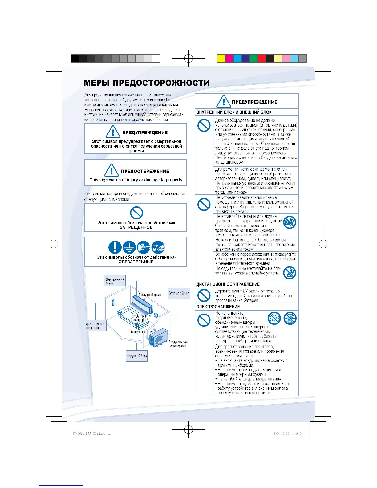 Panasonic CS-YW9MKD - Safety Precautions; WARNING; PRECAUTION; Indoor Unit and Outdoor Unit