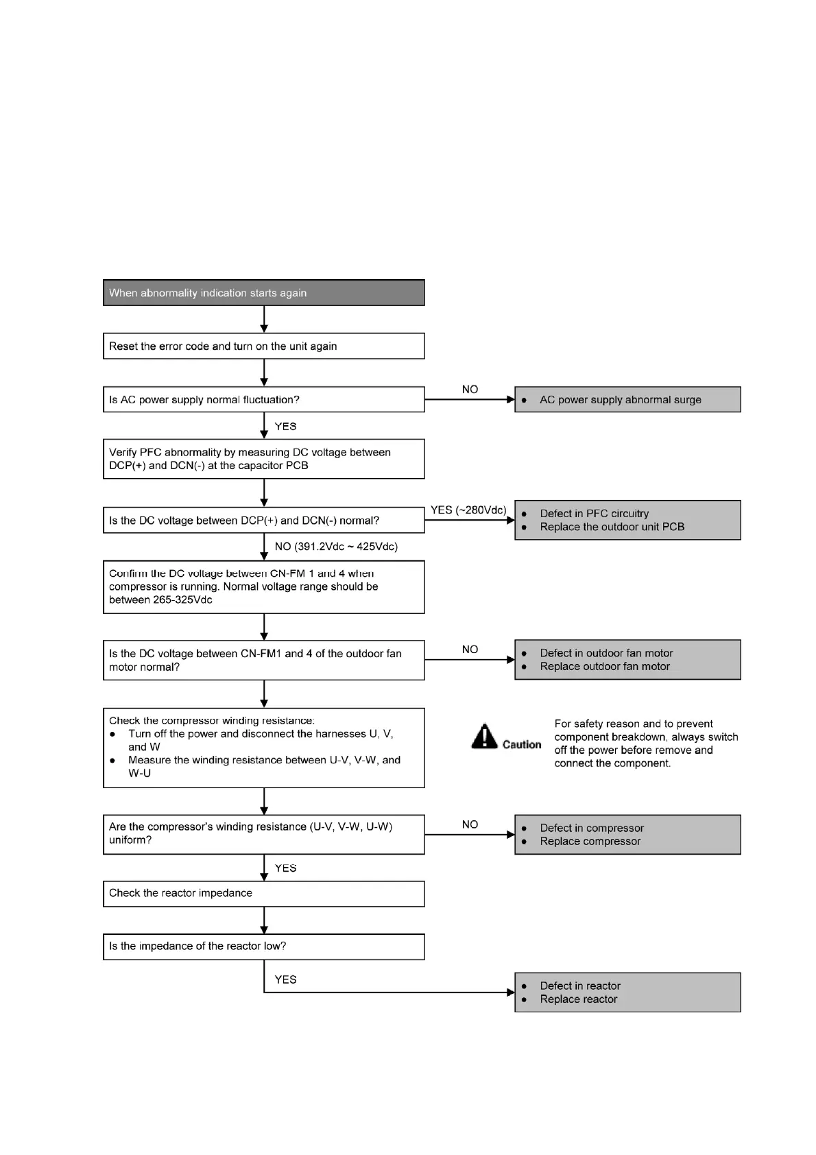 the outdoor unit main PCB senses abnormal DC voltage level for power transistors.
