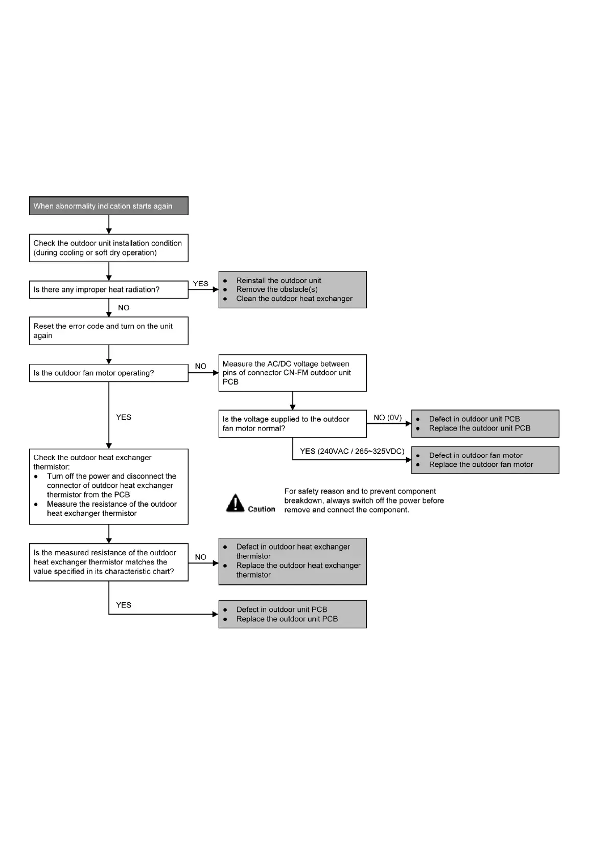 Outdoor heat exchanger temperature rise due to defective of outdoor fan motor.