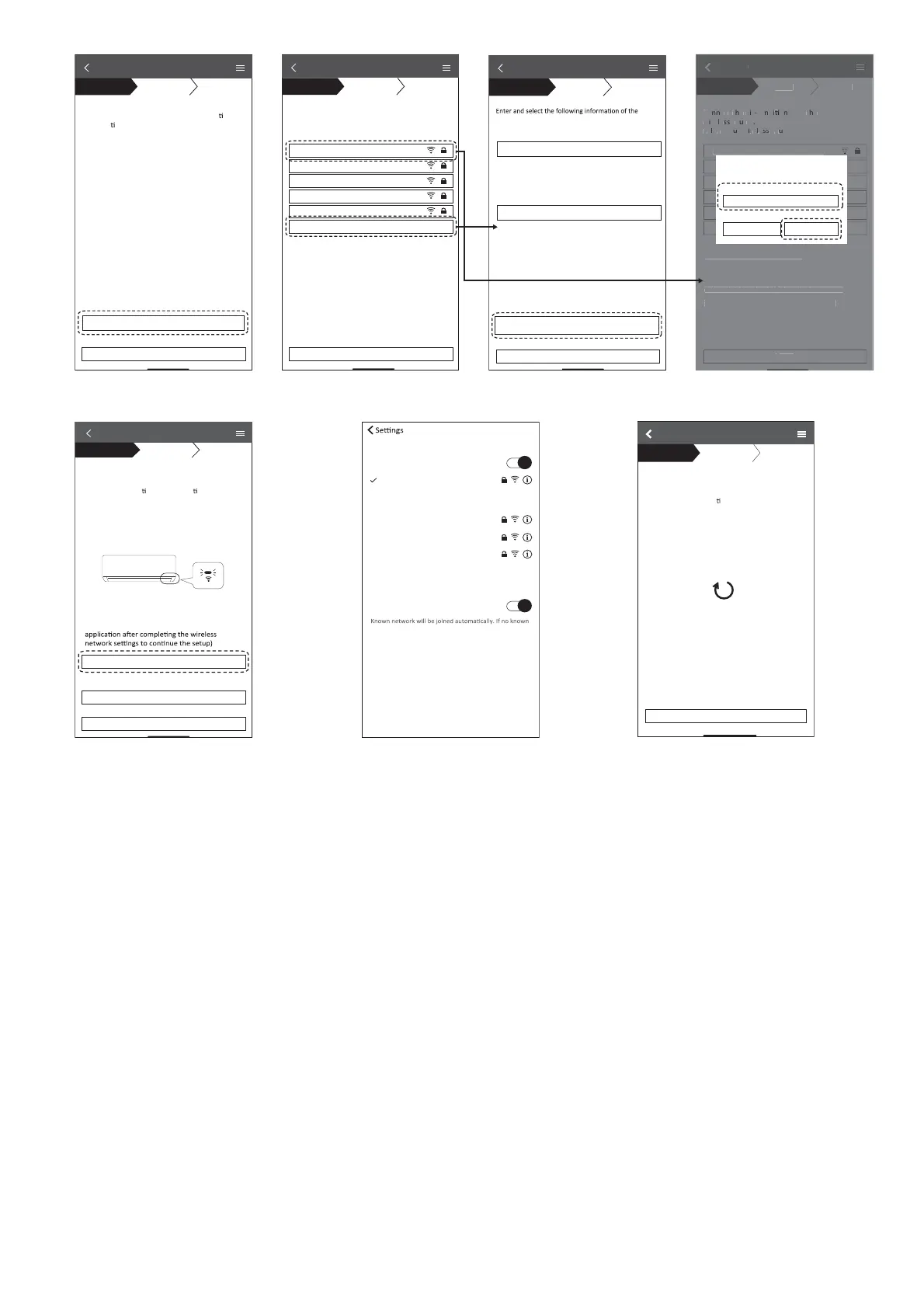 ON, connect the smartphone to wireless router. (return to this application after completing the wireless network settings to continue the setup)