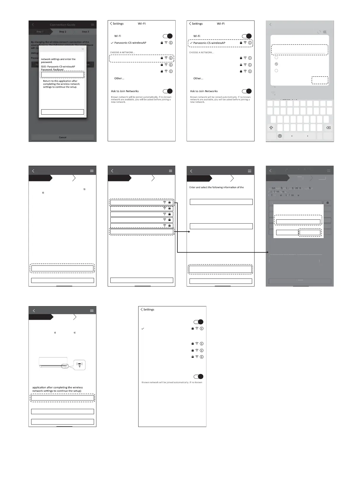 2. Copy the password for later use. Select “Panasonic-CS-wirelessAP” from smartphones Wireless LAN setting and enter the copied password.