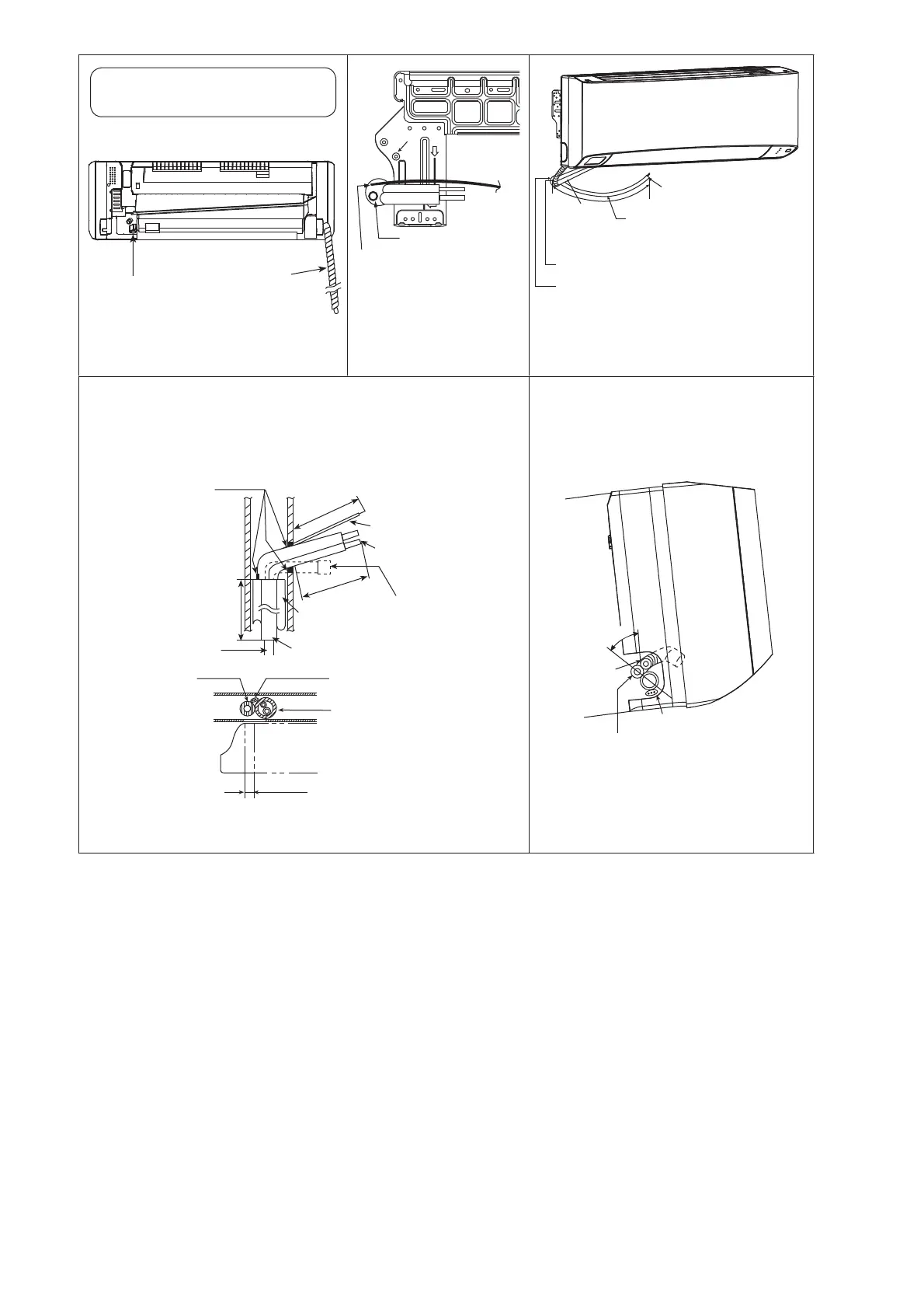 The power supply cord, indoor and outdoor unit connection cable can be connected without removing the front grille.