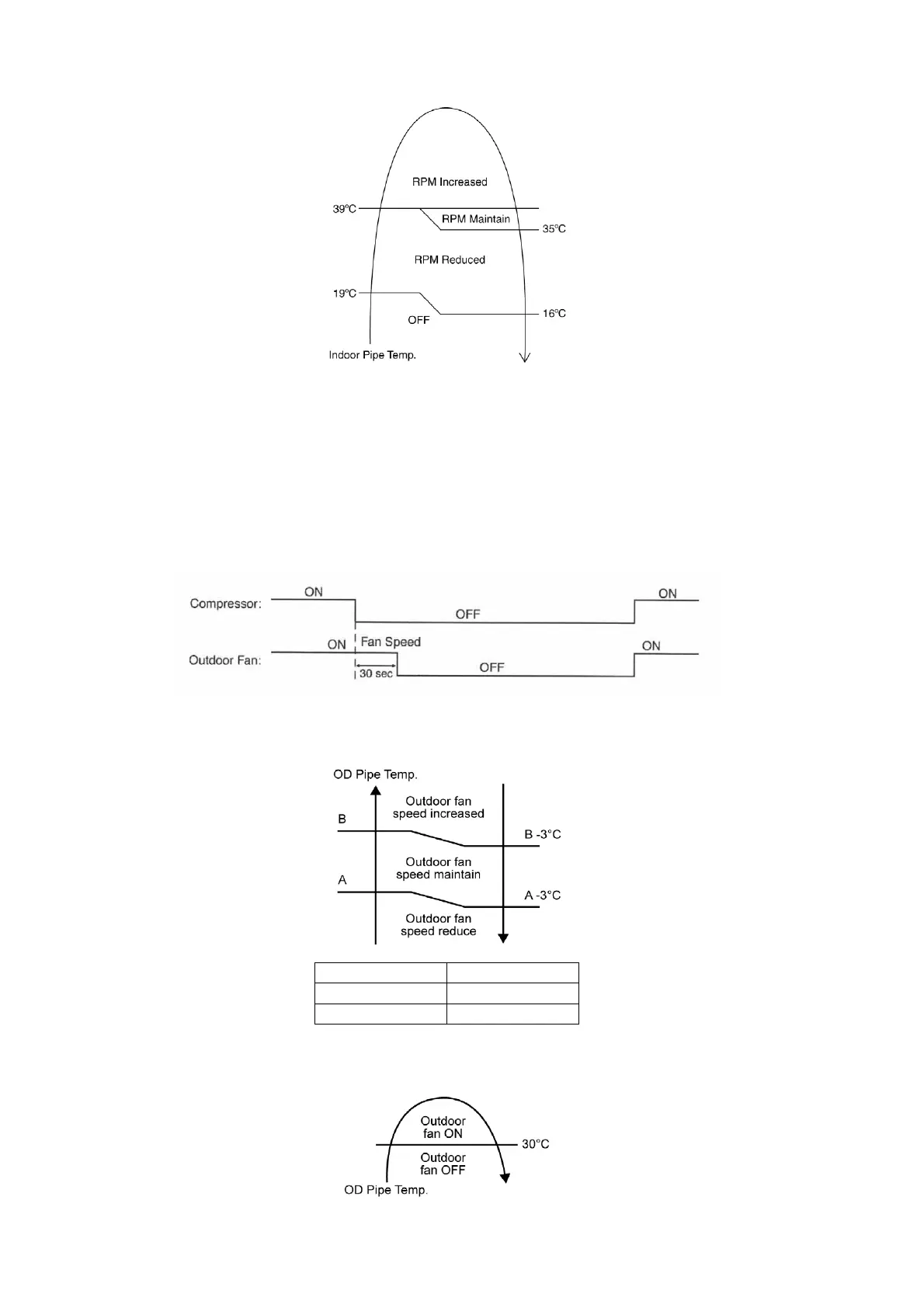 During above condition, when indoor heat exchanger temperature is below 5°C, the outdoor fan will stop