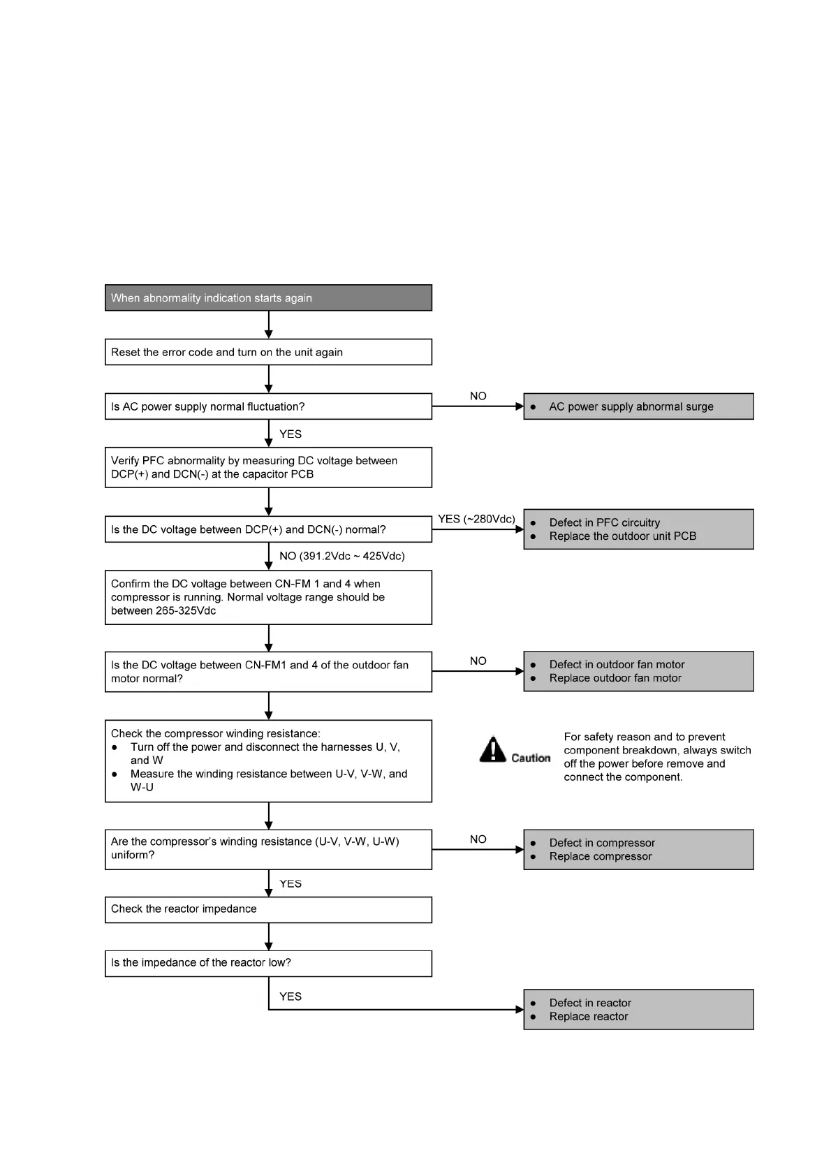 the outdoor unit main PCB senses abnormal DC voltage level for power transistors.