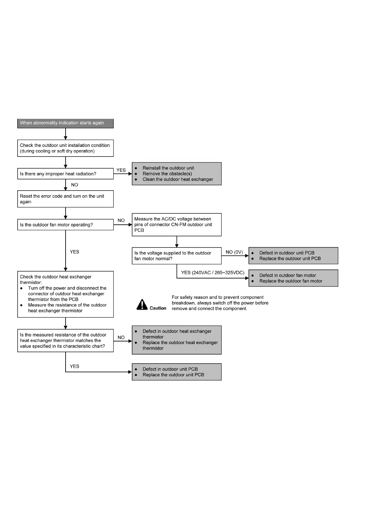 Outdoor heat exchanger temperature rise due to defective of outdoor fan motor.