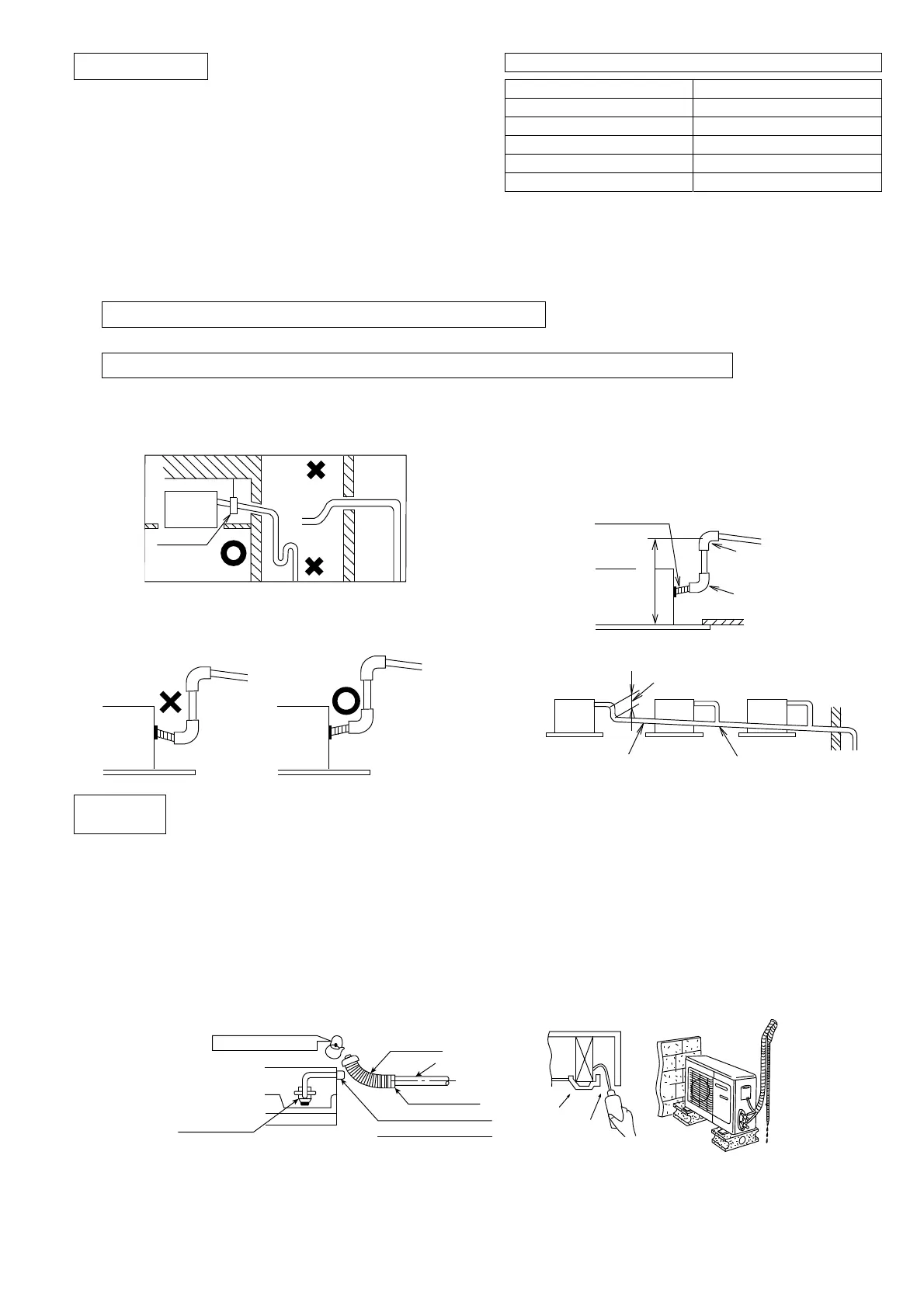 Drain piping must have down-slope (1/50 to 1/100); be sure not to provide up-and-down slope to prevent reversal