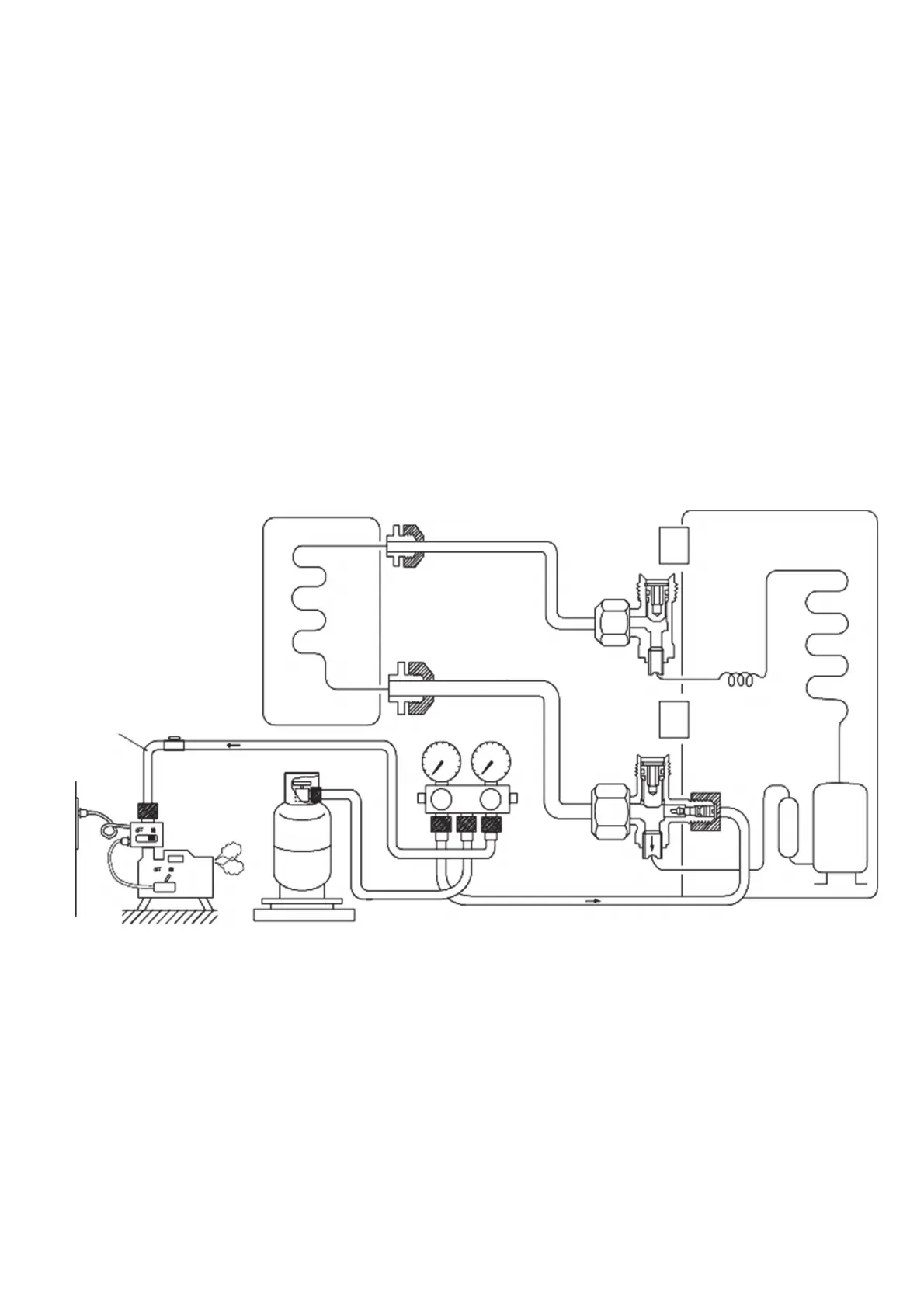 1. Attach charging hose (blue) to the service port of the outdoor unit.
