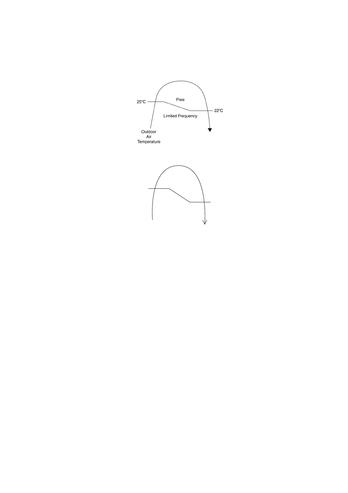 The compressor operating frequency is regulated in accordance to the outdoor air temperature as shown in the