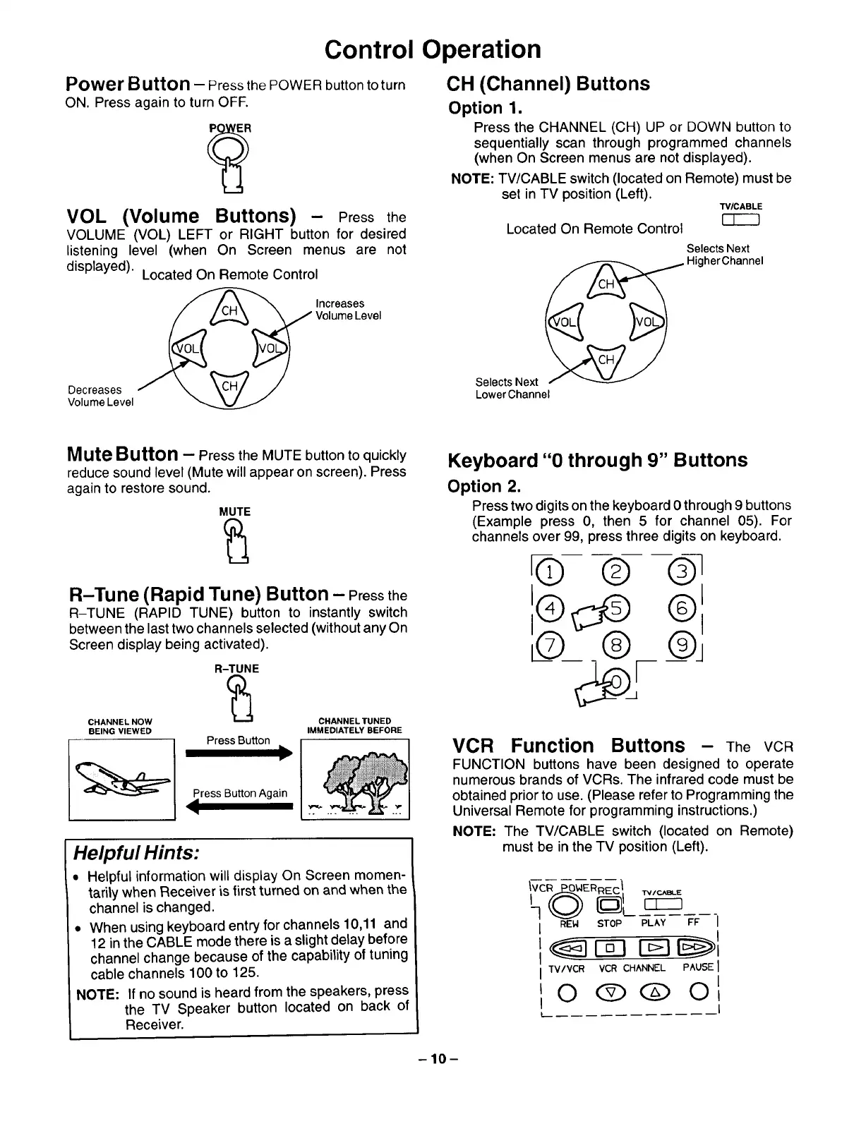 NOTE: The TV/CABLE switch (located on Remote)