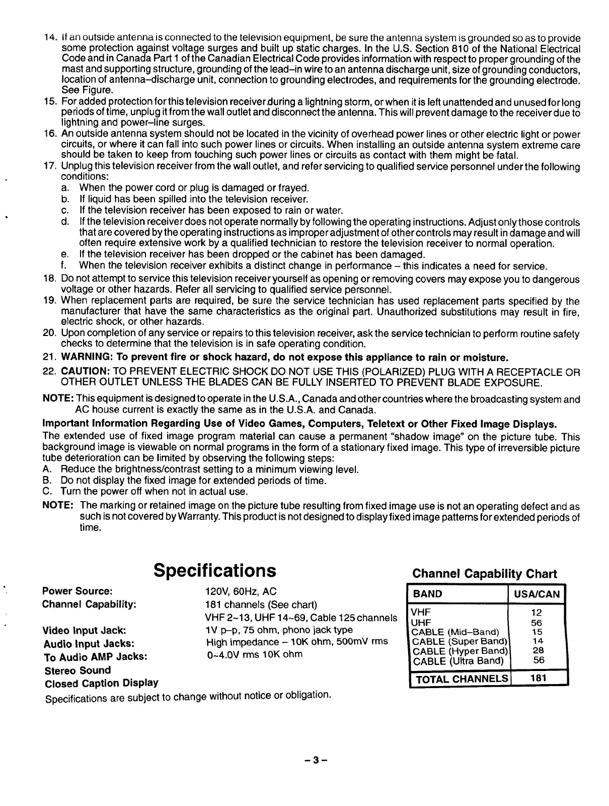 18. Do not attempt to service this television receiver you rself as opening or removing covers may expose you to dangerous