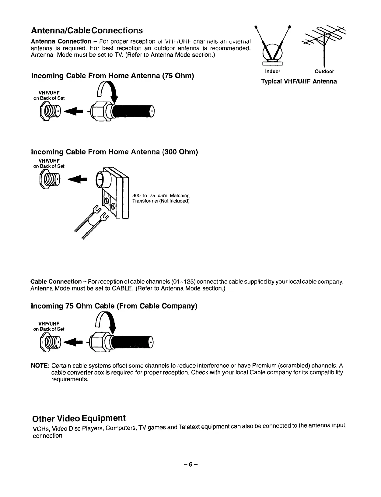 Antenna Connection - For proper reception uf VHt-/UHI- cllarlllel5 dfl _er_lal