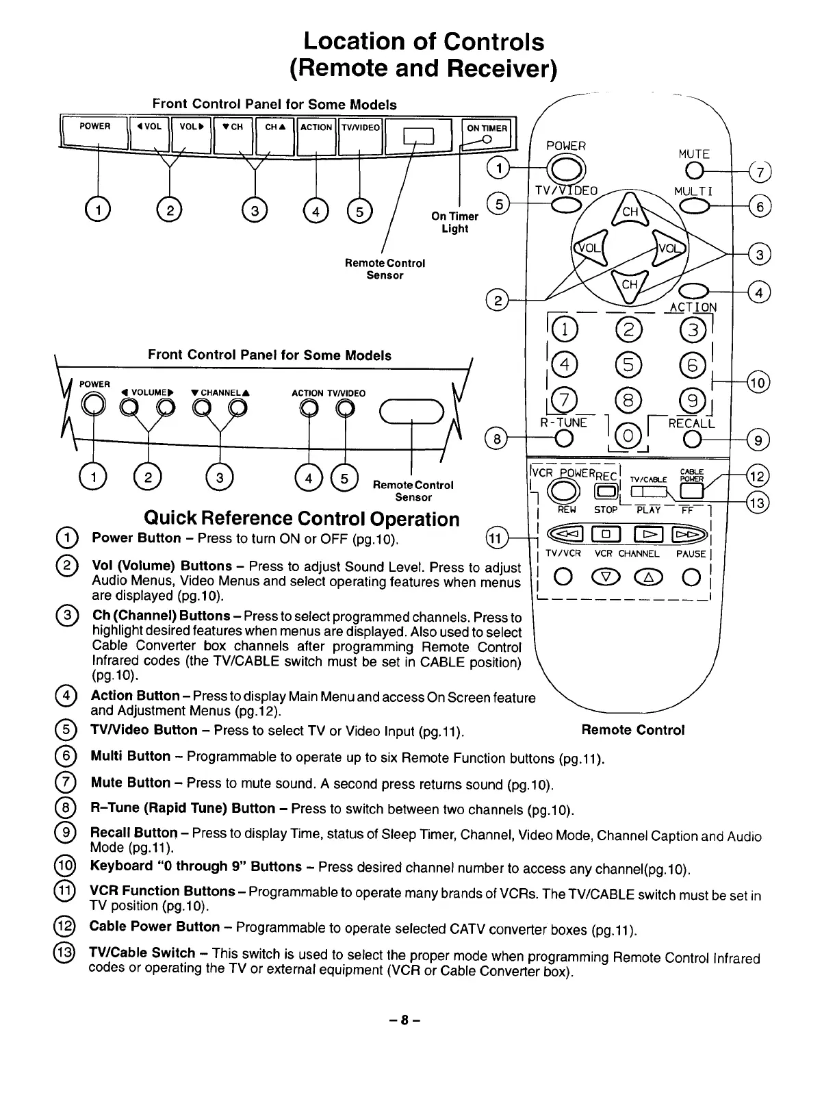 VCR Function Buttons- Programmable to operate many brands of VCRs. The TV/CABLE switch must be set in