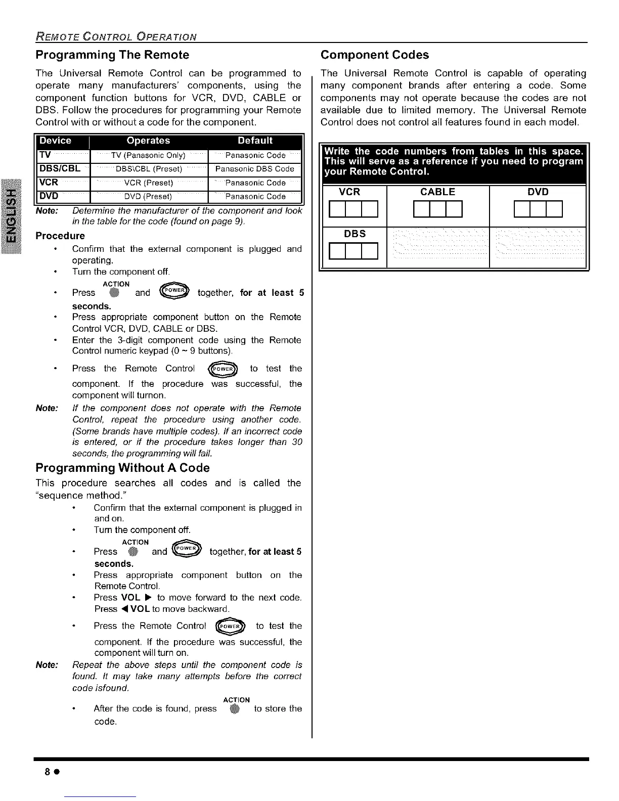 Enter the 3_digit component code using the Remote