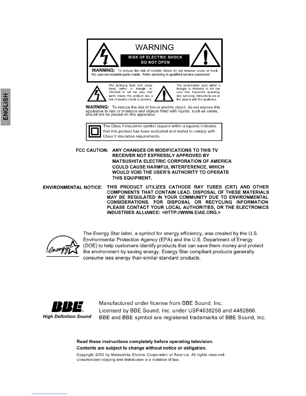 Copyright 2003 by Matsushita Electric Corporation of America. A_I rights reserved.