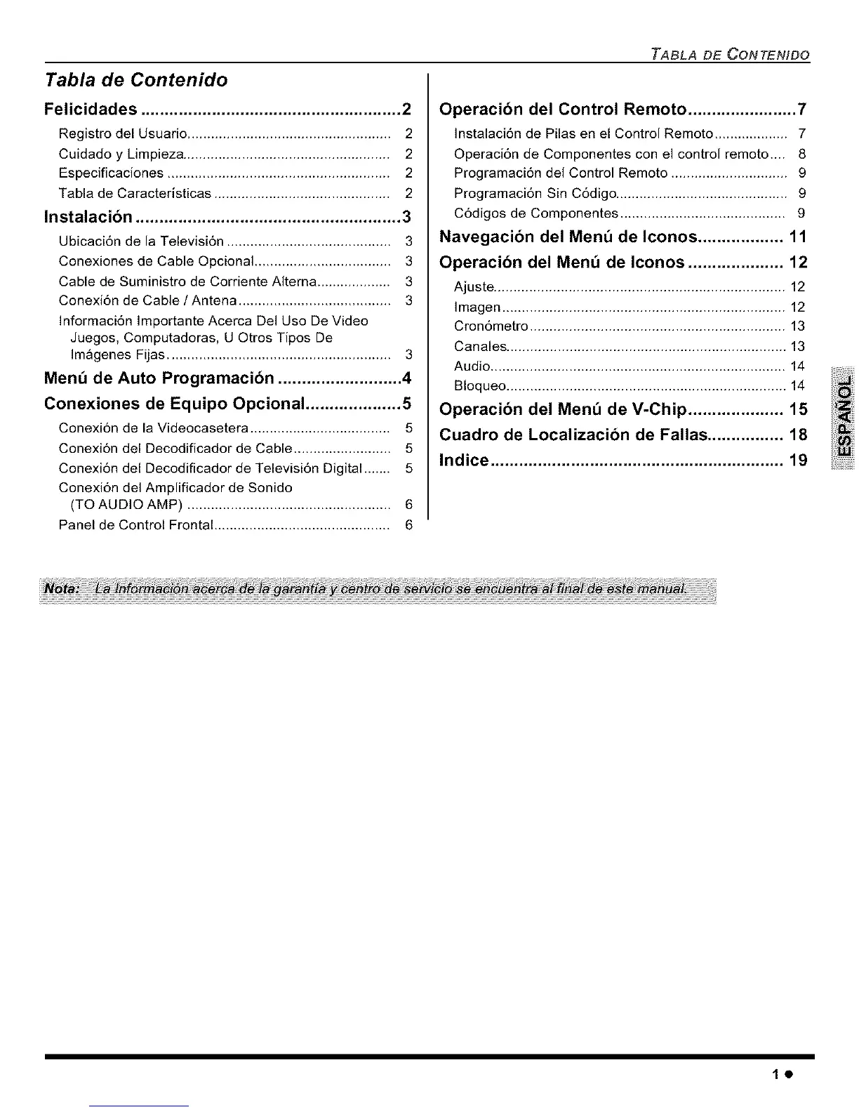 Instalaci6n de Pilas en el Control Remoto ................... 7