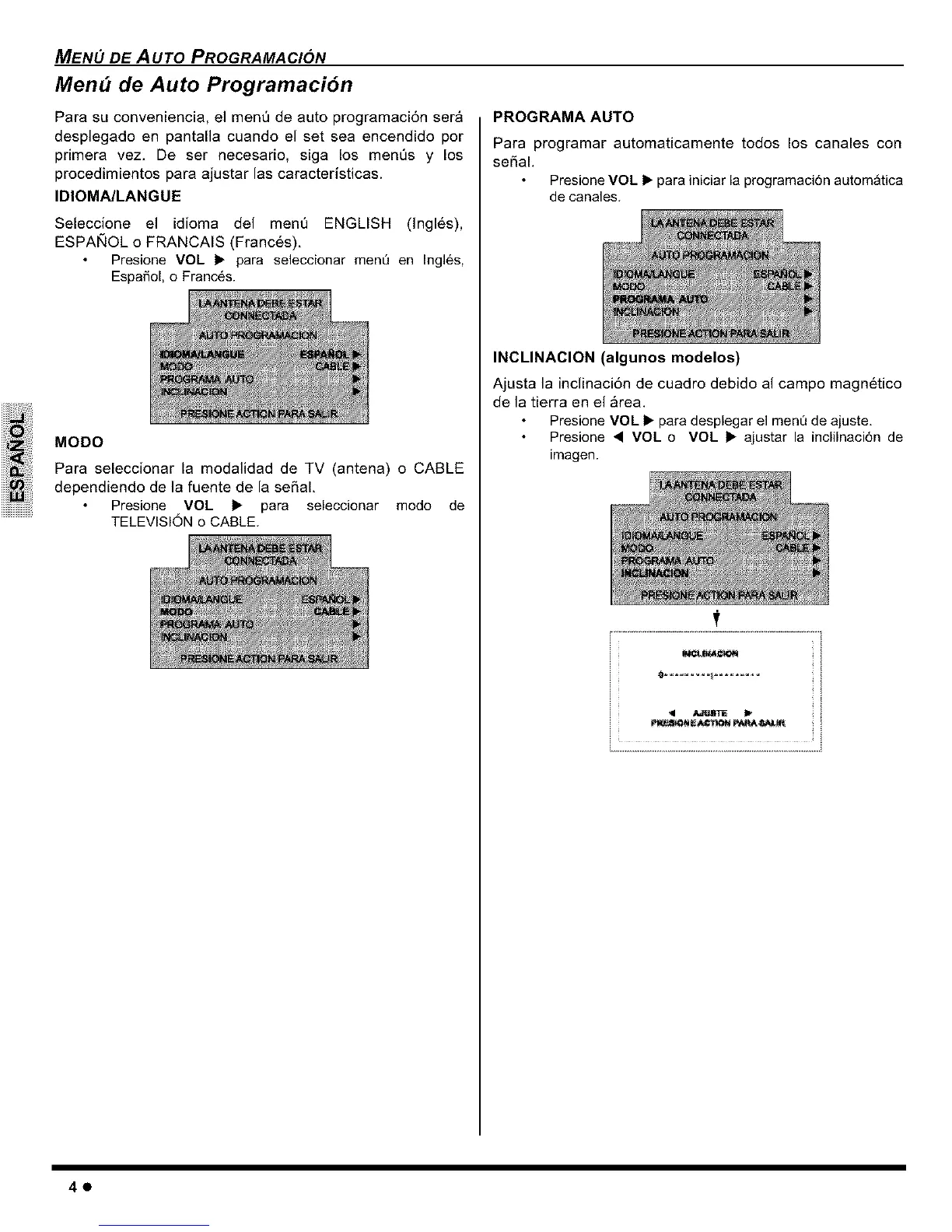 Presione • VOL o VOL 1_ ajustar la inclilnaci6n de