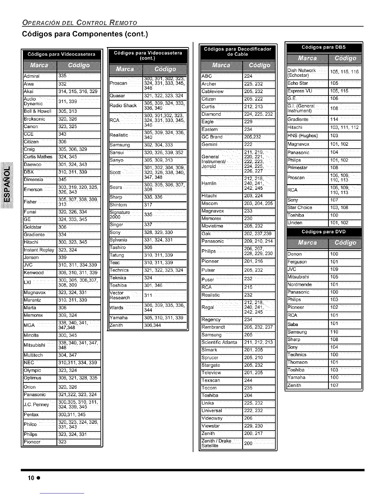 OPERACtON DEL CONTROL REMOTO