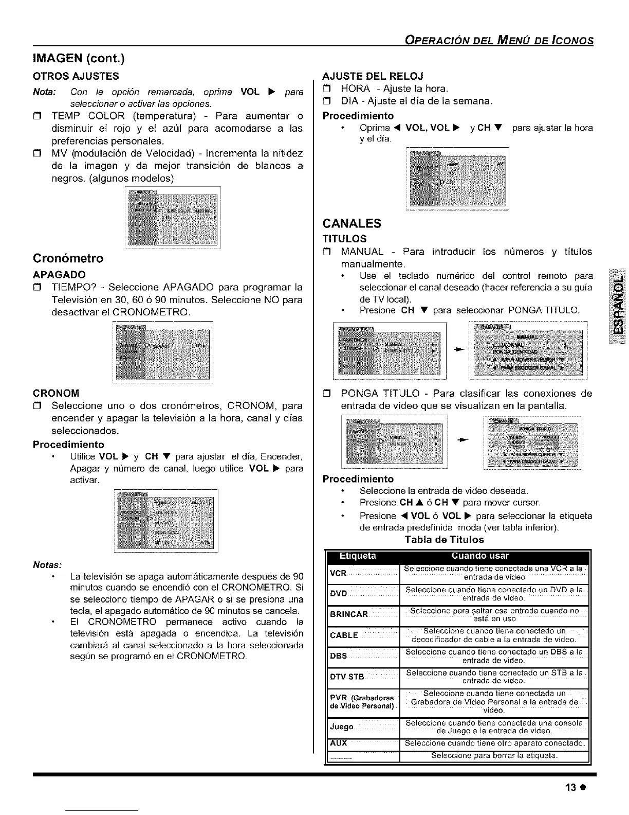Utilice VOL • y CH • para ajustar el dia, Encender,