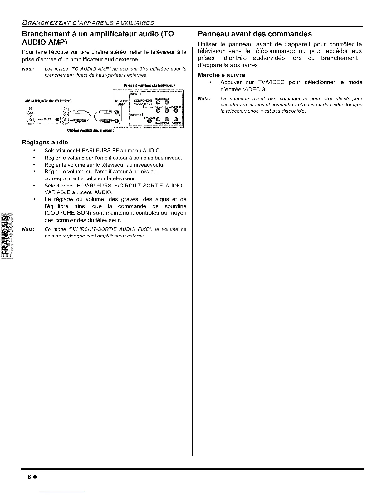 Nota: Les prises "TO AUDIO AMP" ne peuvent _tre utitisees pour le
