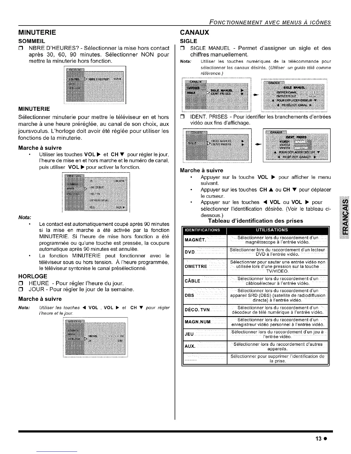 Nota: Utiliser /es touches < VOL , VOL 1_ et CH • pour regler