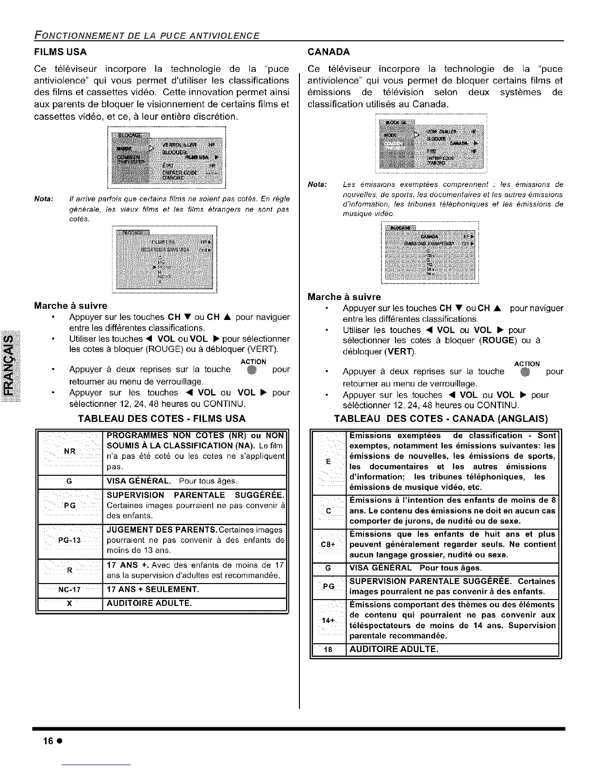 Appuyer sur les touches CH • ou CH •
