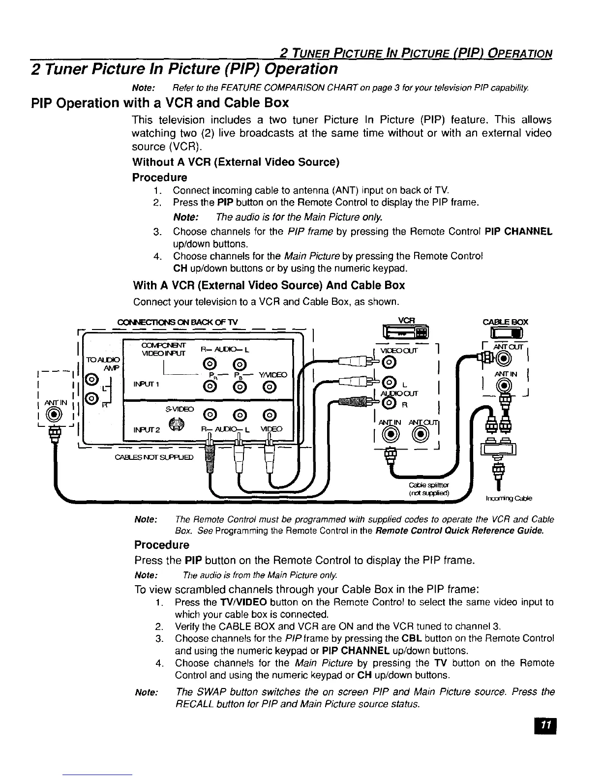 PIP Operation with a VCR and Cable Box
