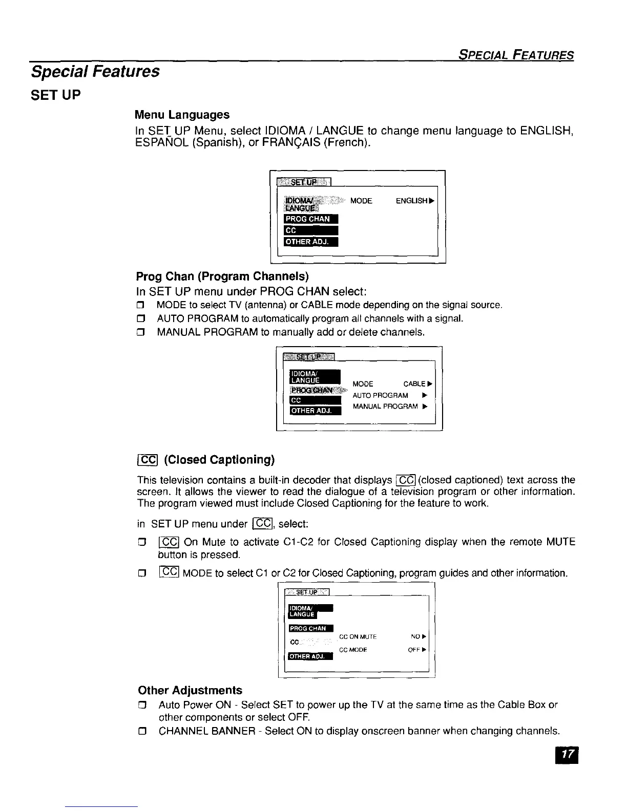 [] [_ On Mute to activate C1-C2 for Closed Captioning display when the remote MUTE