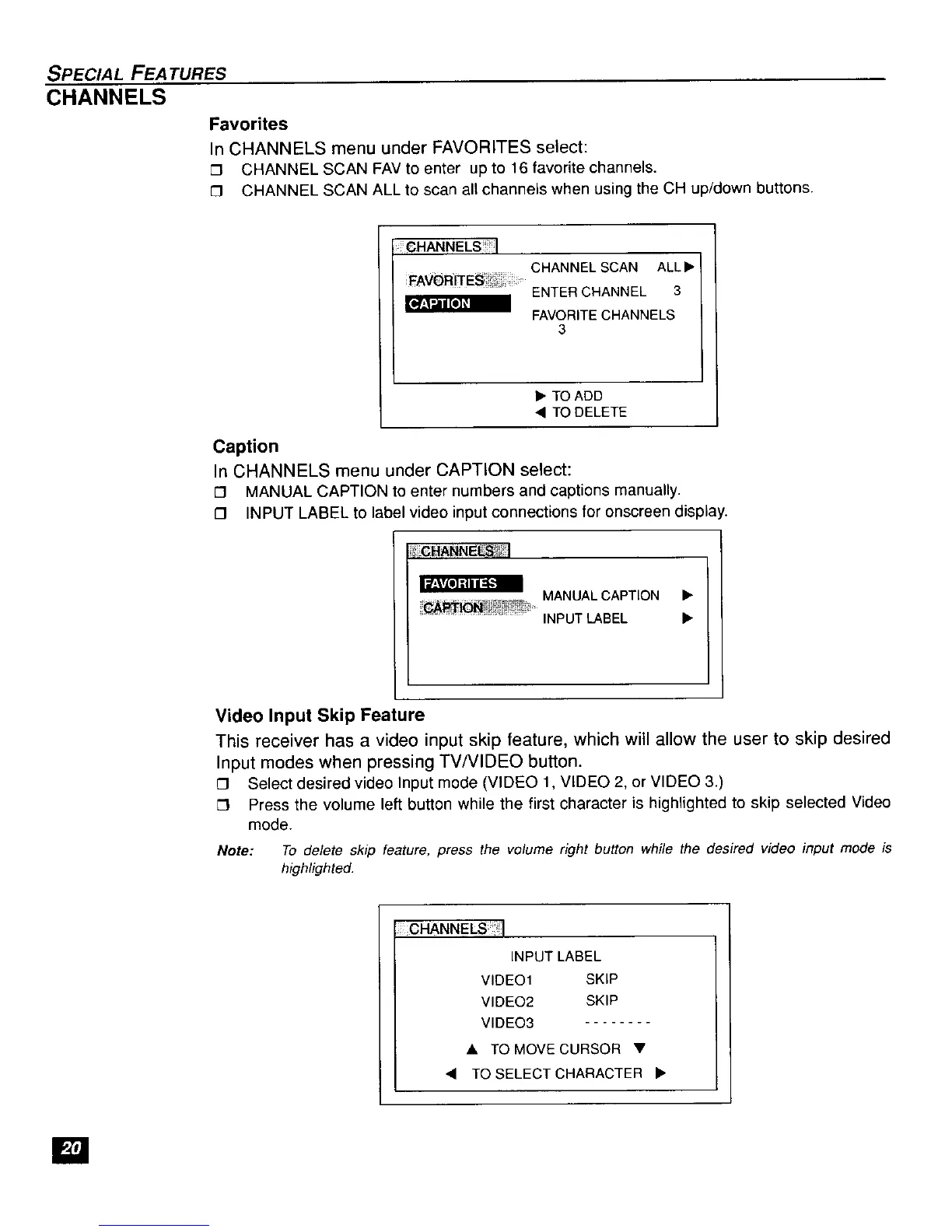 CHANNEL SCAN FAV to enter up to 16 favorite channels.