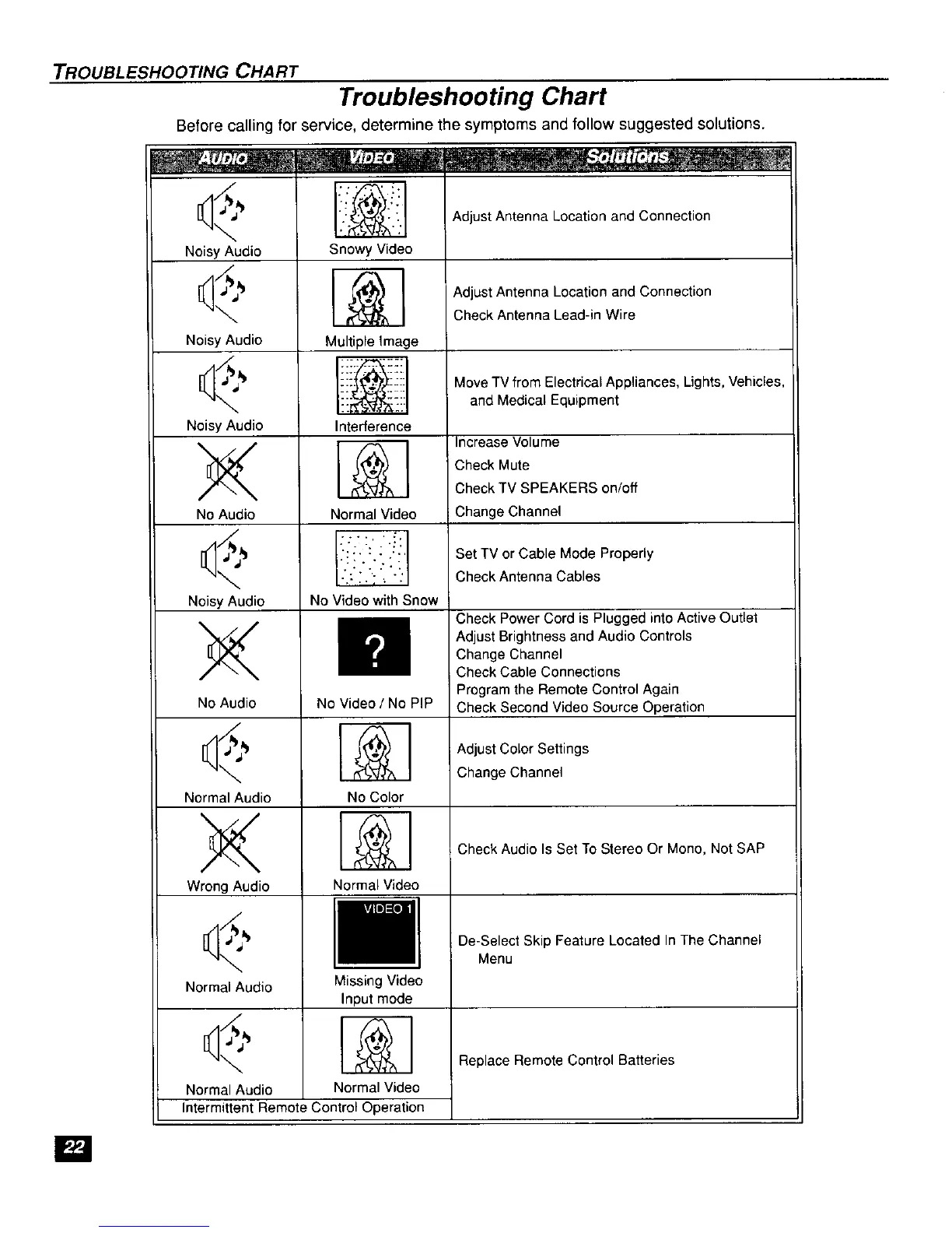 Before calling for service, determine the symptoms and follow suggested solutions.
