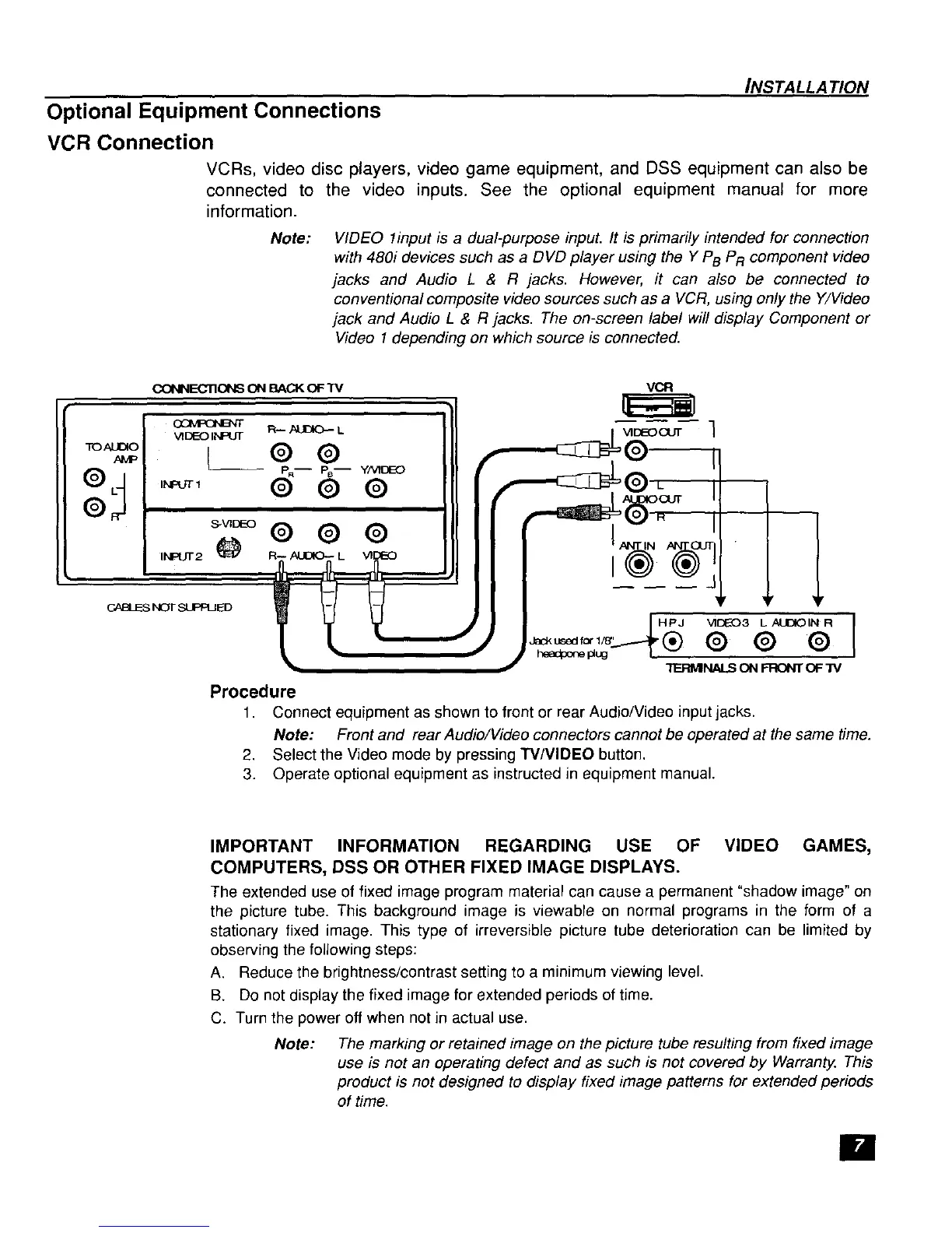stationary fixed image. This type of irreversible picture tube deterioration can be limited by
