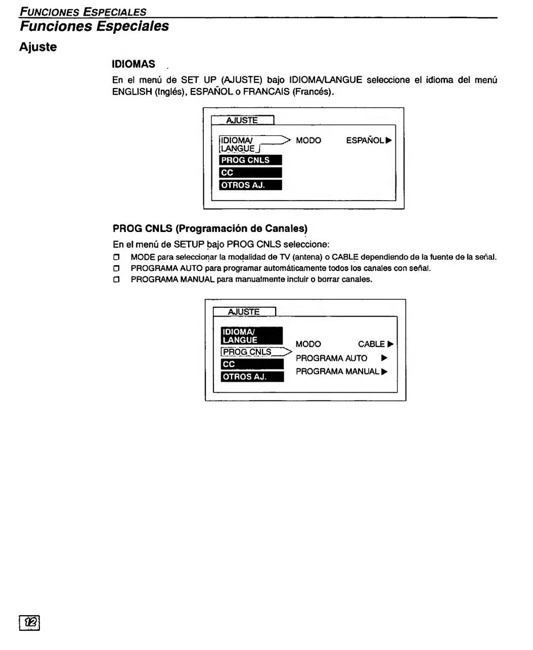 Panasonic CT-27D20 - Funciones Especiales.12; PROG CNLS (Programacion de Canales)