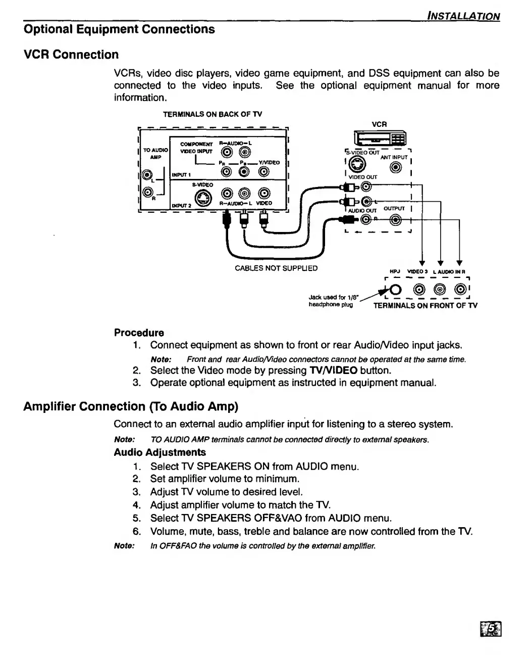 Panasonic CT-27D20 - Optional Equipment Connections.5; VCR Connection; Amplifier Connection (to Audio Amp)